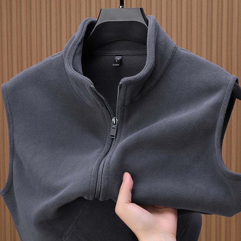 摇粒绒立领马甲男拉链秋冬季加绒加厚双面奥粒绒无袖开衫外套背心