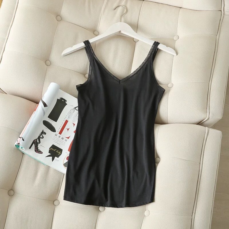 品质超薄超柔精梳棉 修身百搭V领纯棉打底背心吊带上衣2021春夏女
