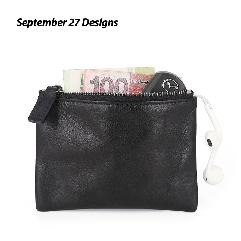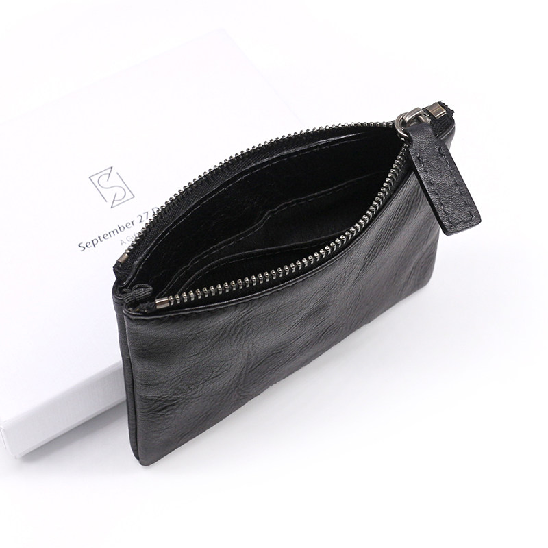 真皮头层牛皮零钱袋男皱褶钱袋迷你拉链包女薄简约卡包硬币收纳包