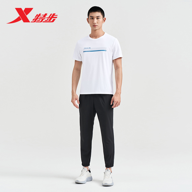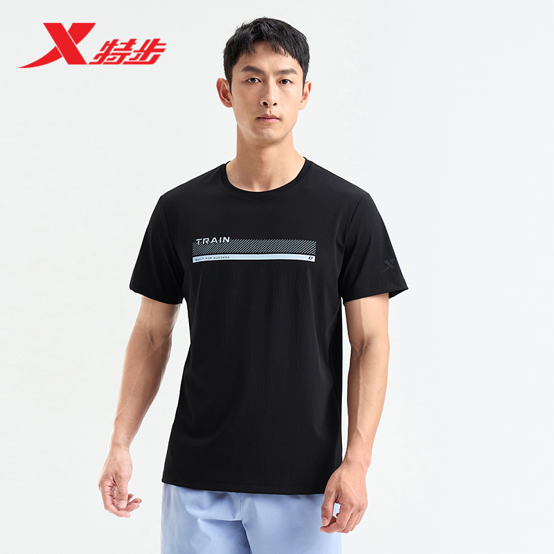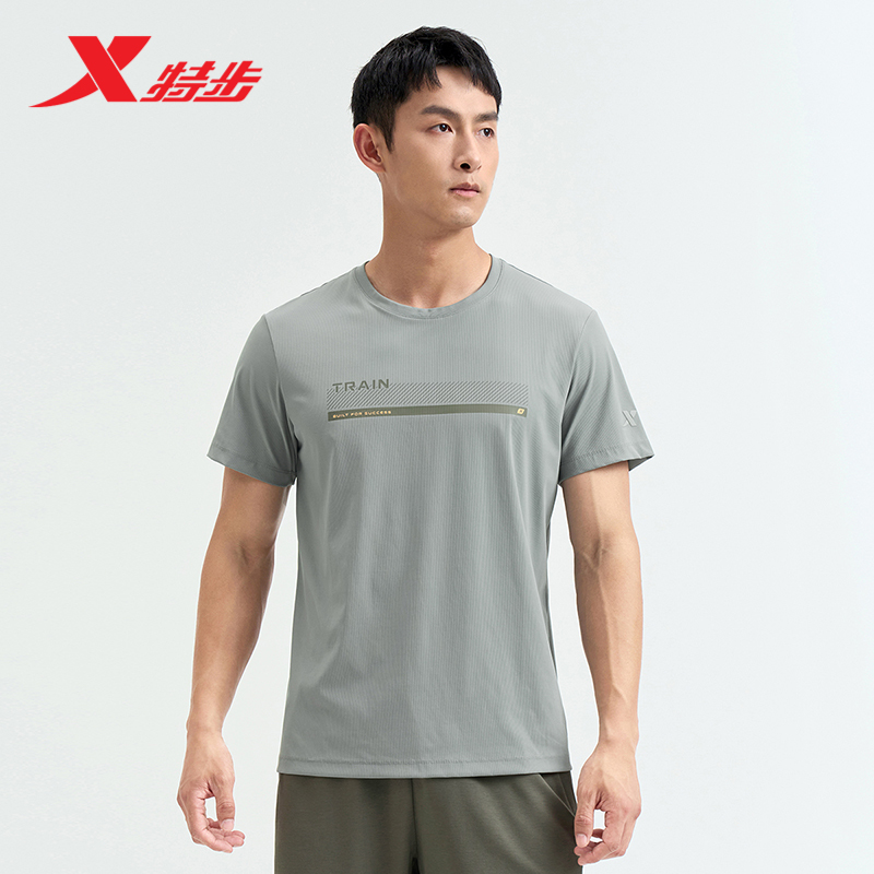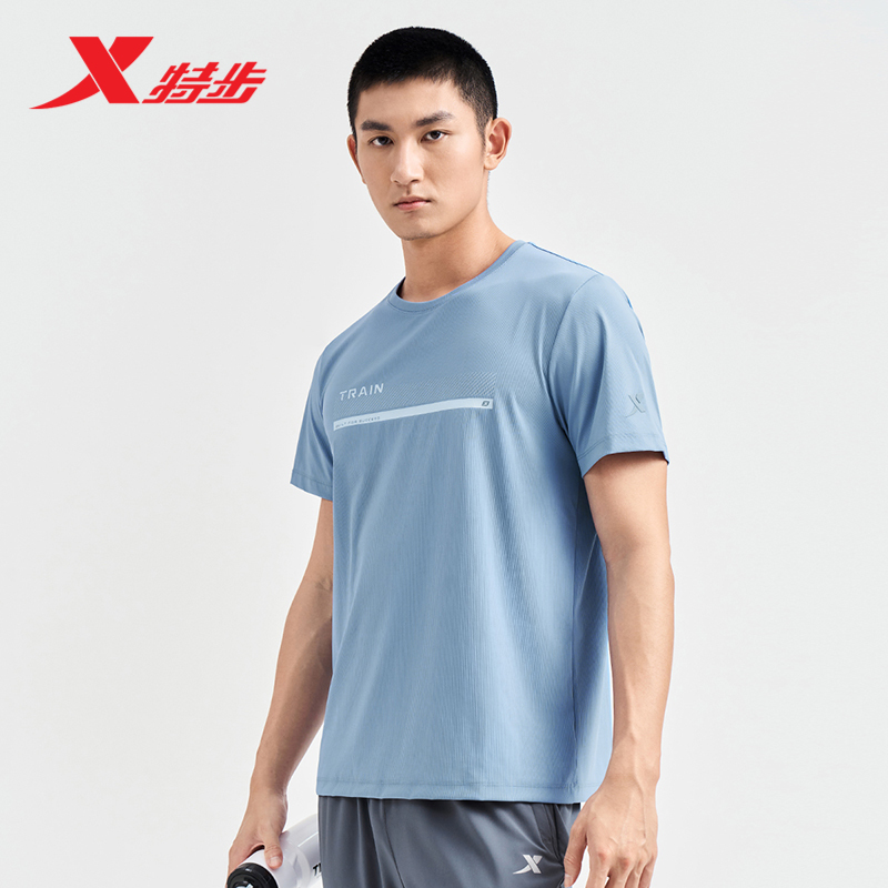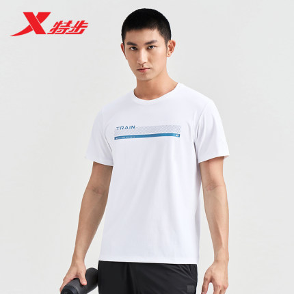 特步短袖T恤男夏新款训练体恤健身半袖冰丝透气男装圆领运动上衣