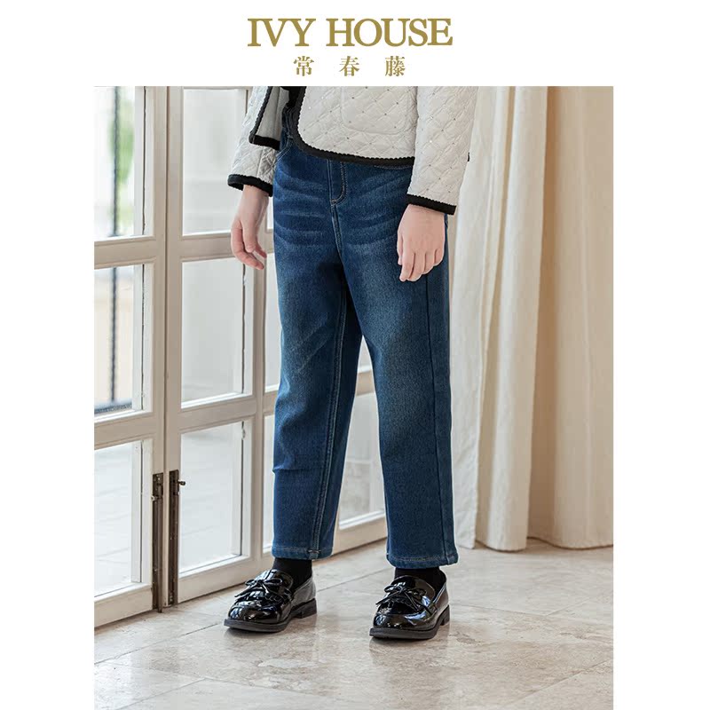 IVY HOUSE常春藤儿童装女童裤子秋季款直筒型牛仔裤加绒长裤保暖