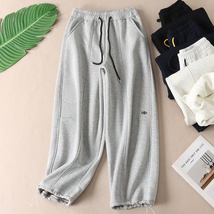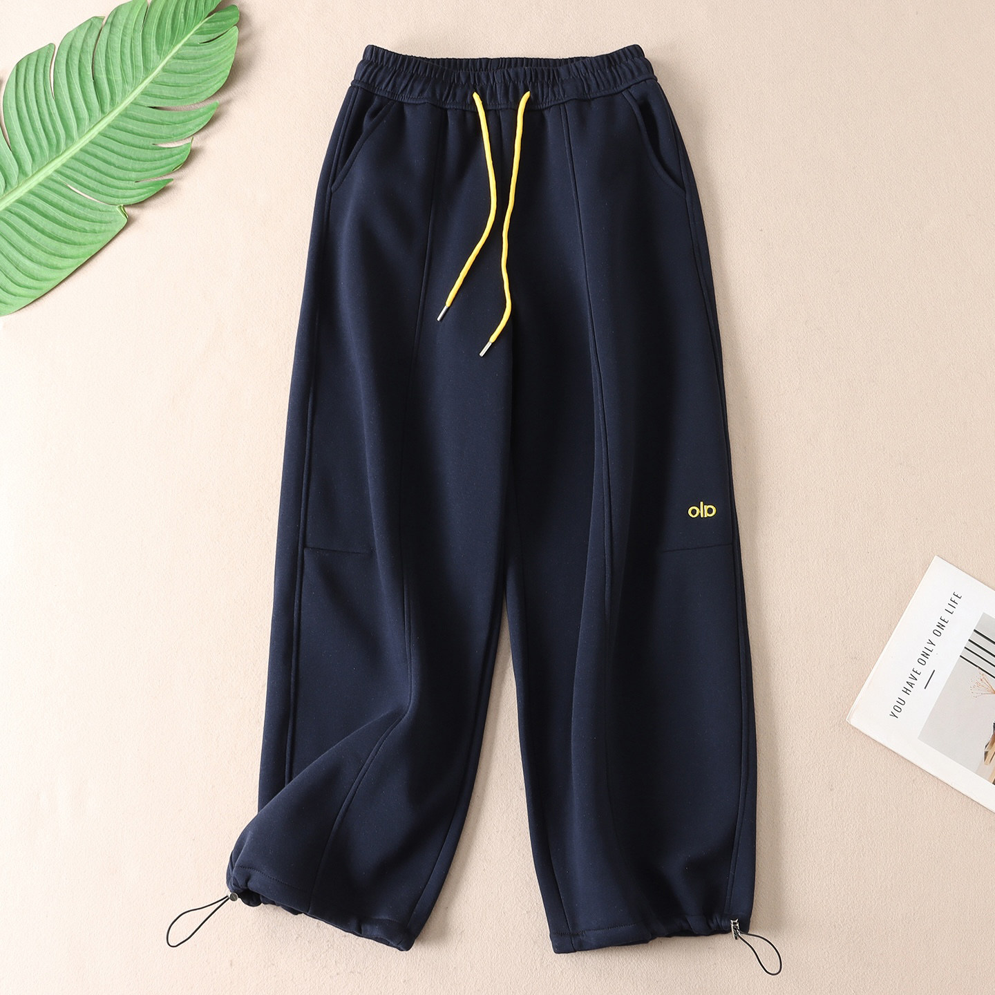 650克~不起球加厚绒华棉卫裤女秋冬新阔腿美式休闲宽松长裤子W263