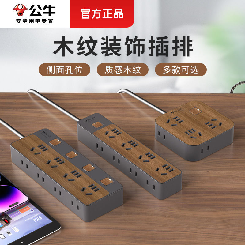 公牛插座排插插线板USB快充带线家用办公高端桌面创意木纹插排