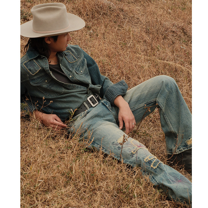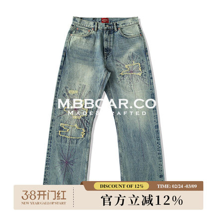 窄幅MMC 蛇年限定蛇毒16.5OZ破坏青光水洗高腰阔腿赤耳丹宁牛仔裤