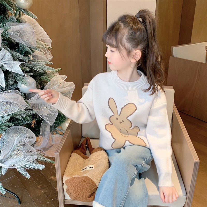 女童加绒毛衣2024冬装新年装儿童韩洋气毛线衣宝宝加厚打底针织衫