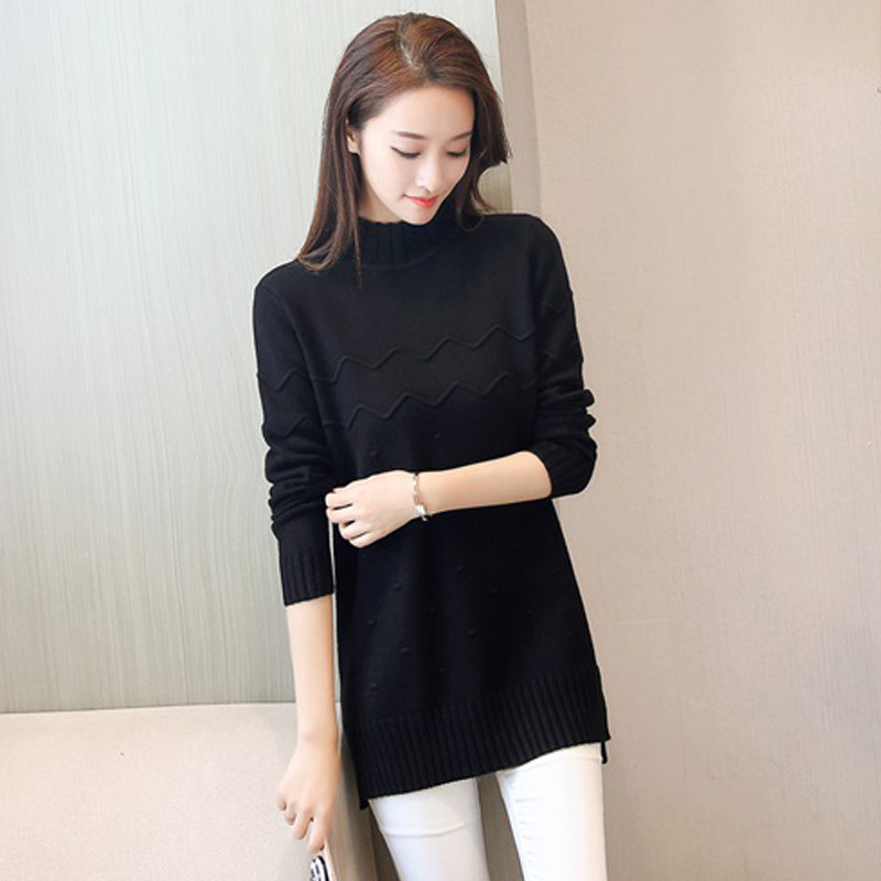 2023秋冬套头女毛衣打底衫中长款韩版半高领宽松针织衫毛衣外套潮