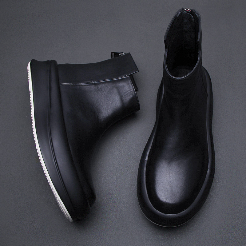 冬季加绒保暖马丁靴男新款英伦风高帮短靴厚底增高皮靴真皮拉链靴