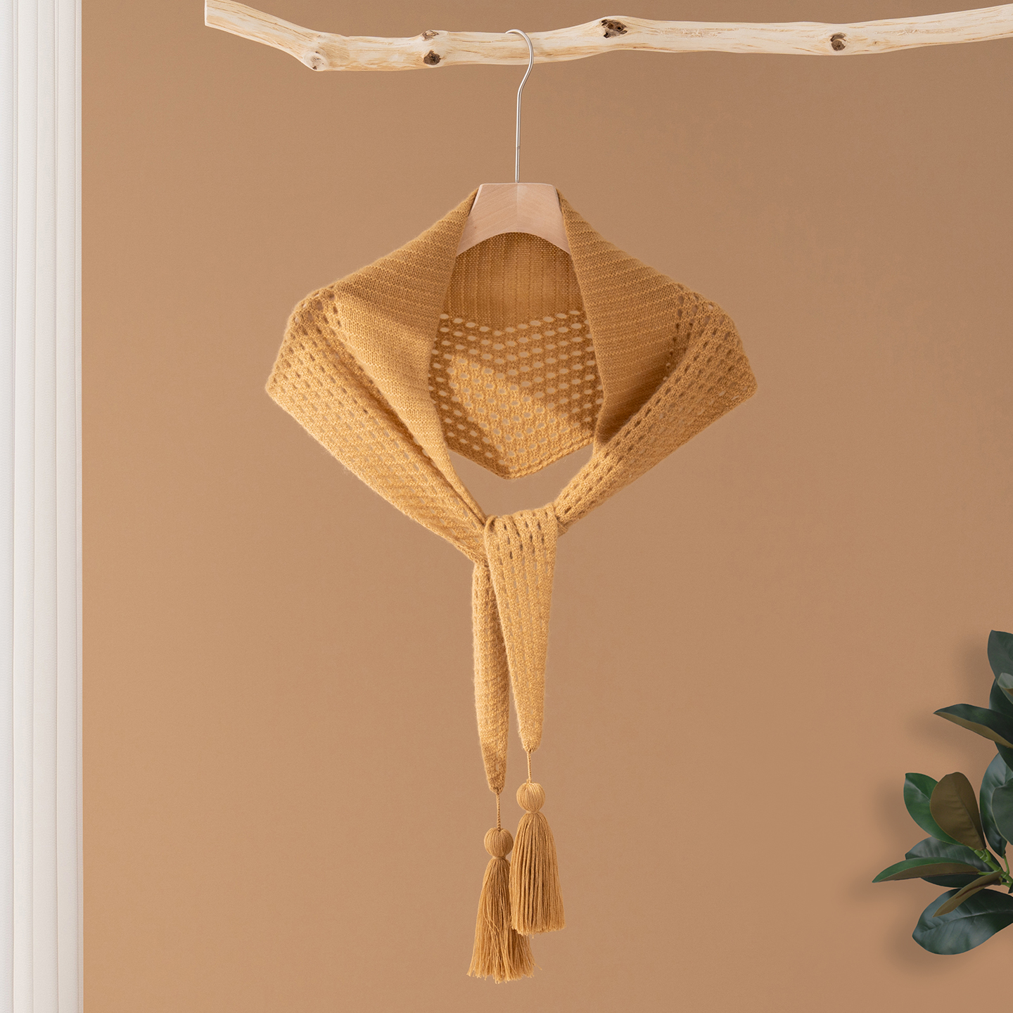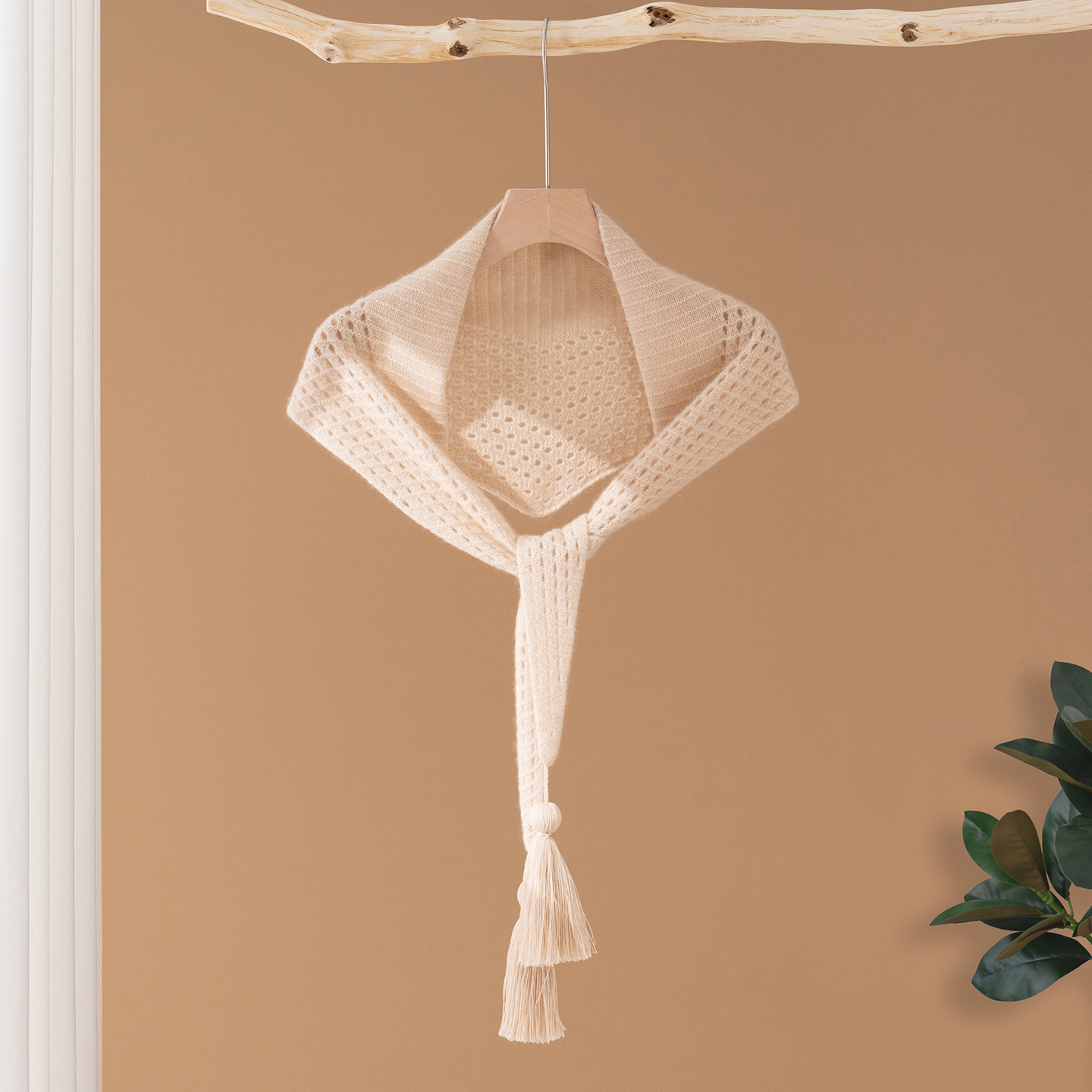 新款山羊绒针织铃铛三角巾女秋冬毛球女羊绒披肩保暖气质围巾