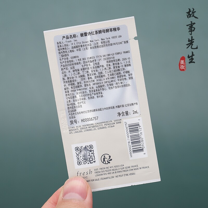 30片打包价 Fresh馥蕾诗红茶酵母酵萃精华液2ml小样 红茶精华水