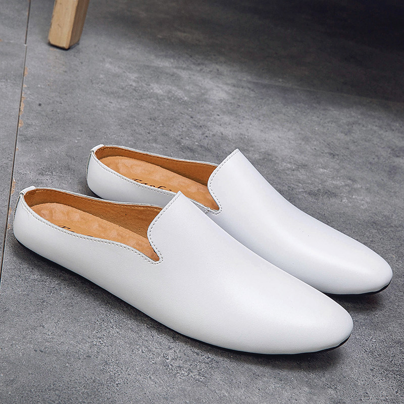 尖头休闲男皮鞋2025新款轻便半拖真皮小码时尚潮流一脚蹬豆豆鞋男