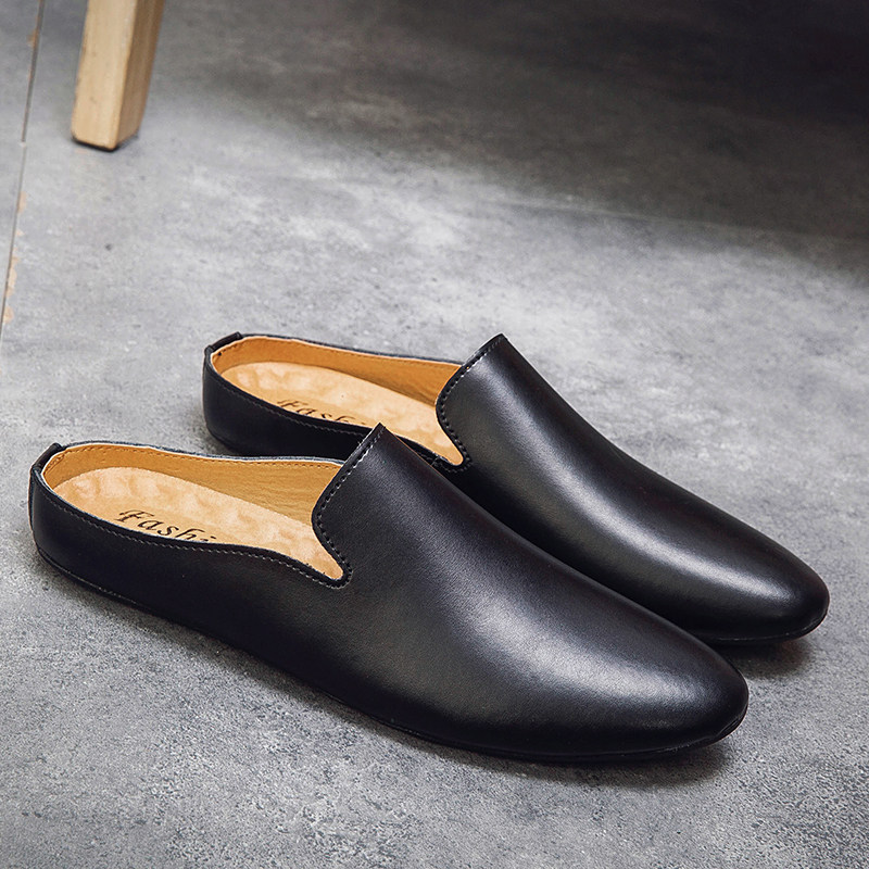 半拖真皮时尚潮流一脚蹬豆豆鞋男