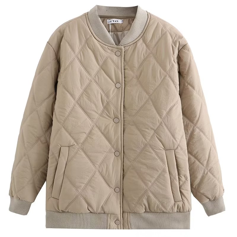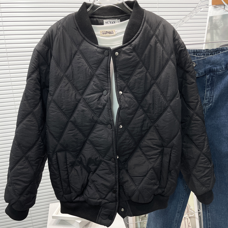 胡子叔大码菱形格立领棒球服棉衣外套胖mm宽松加厚夹棉夹克棉服潮
