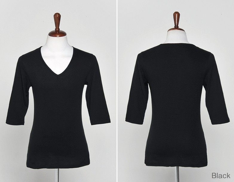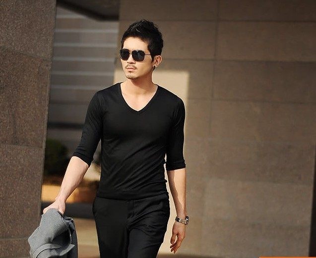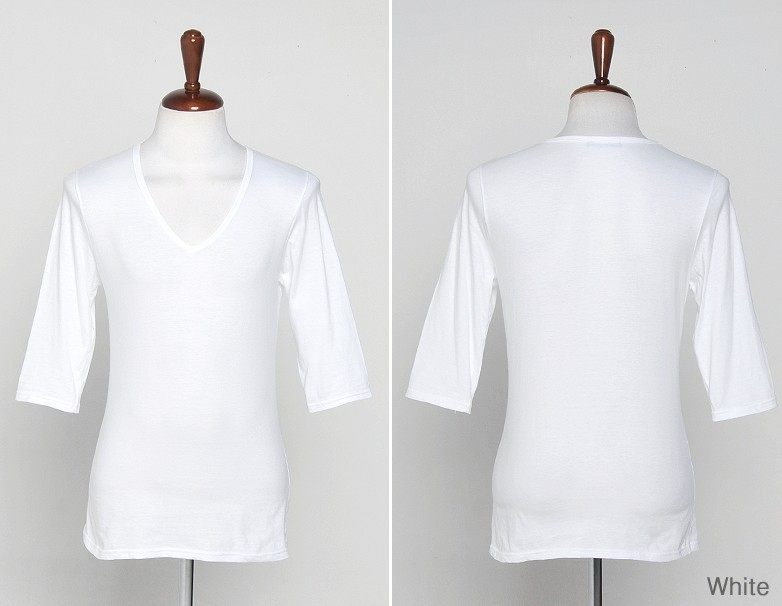 秋冬男士纯棉修身V领7分袖打底衫鸡心领百搭中袖T恤男紧身秋衣休