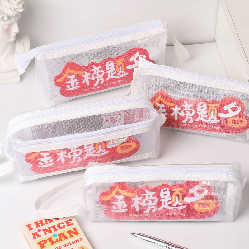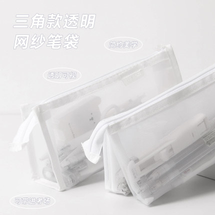 尼家 透明简约网纱考试笔袋ins日系学生男女孩用大容量文具铅笔盒