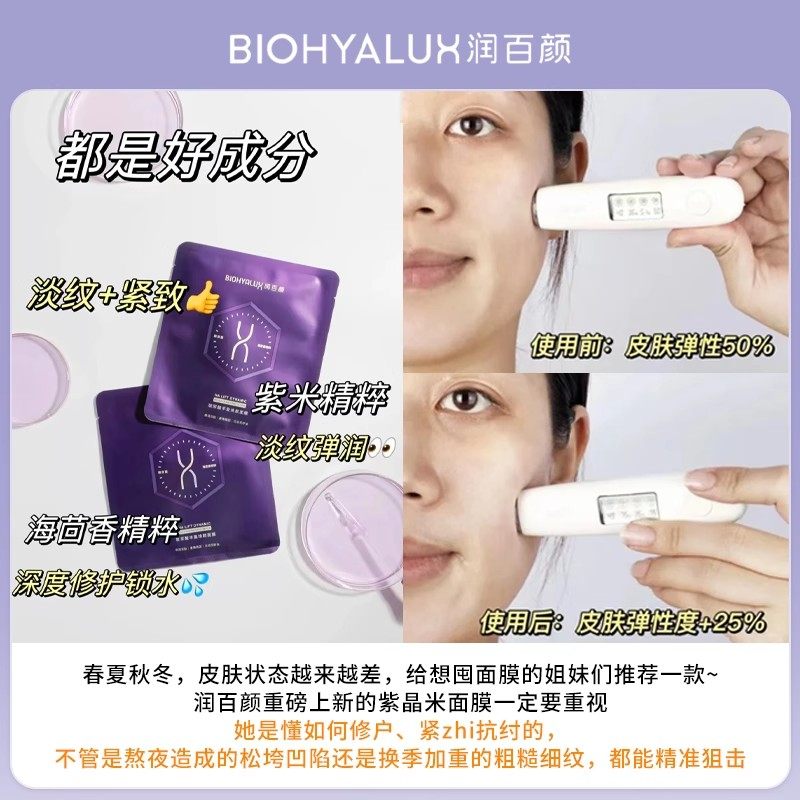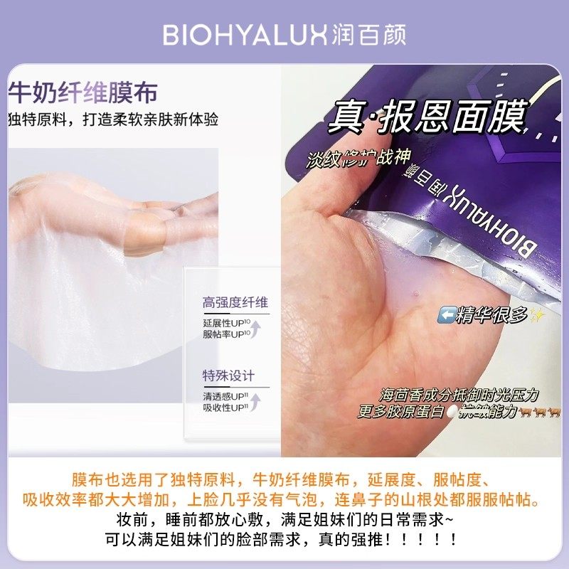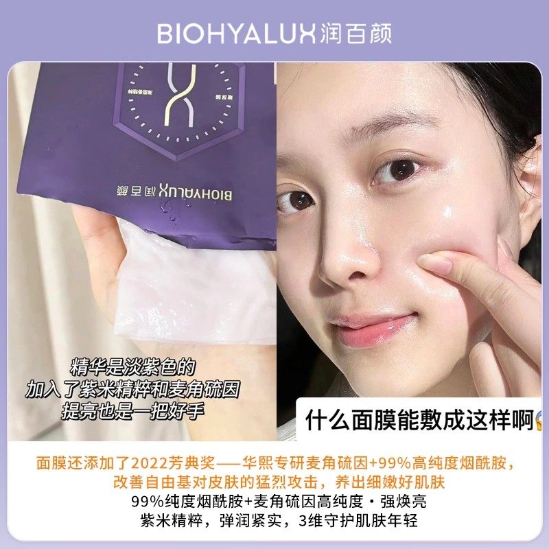 熬夜党救星!润百颜玻尿酸丰盈焕颜面膜保湿补水密集修护敏感肌女