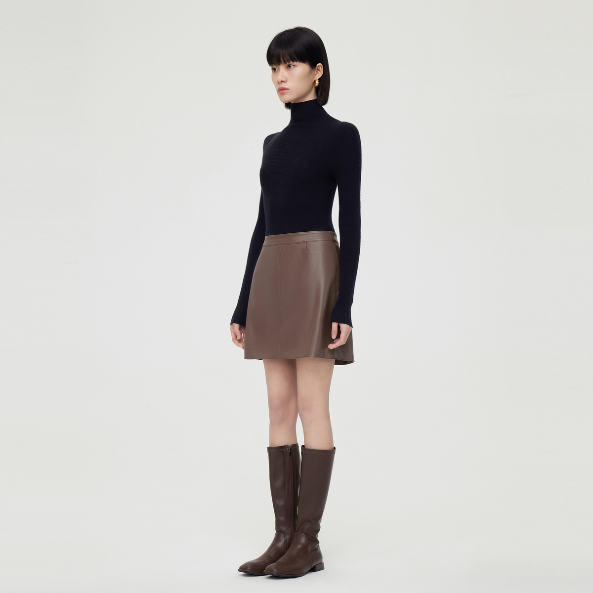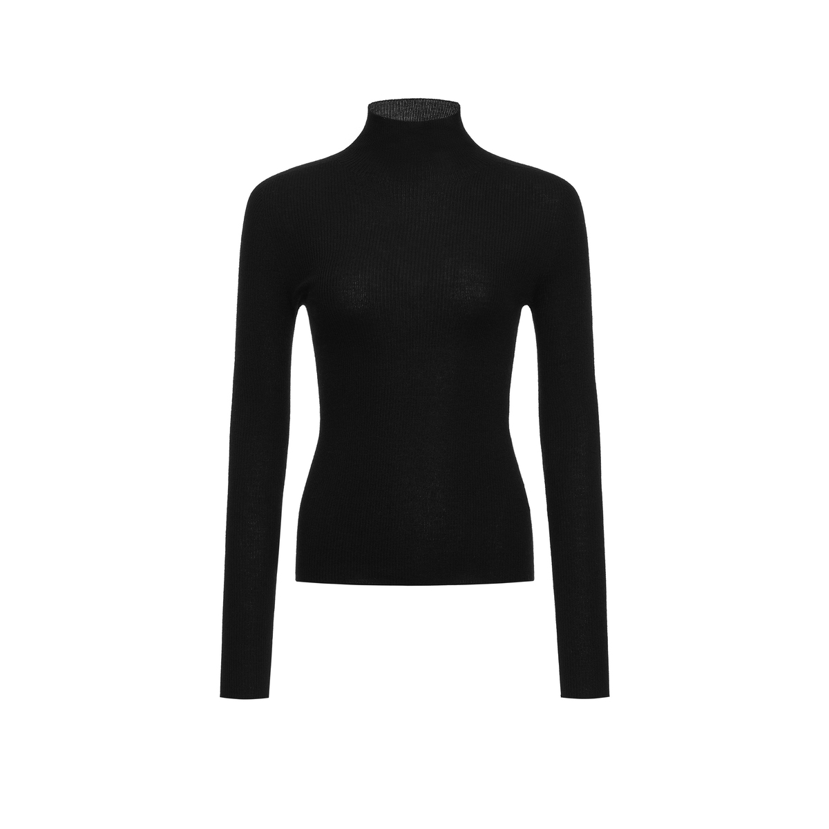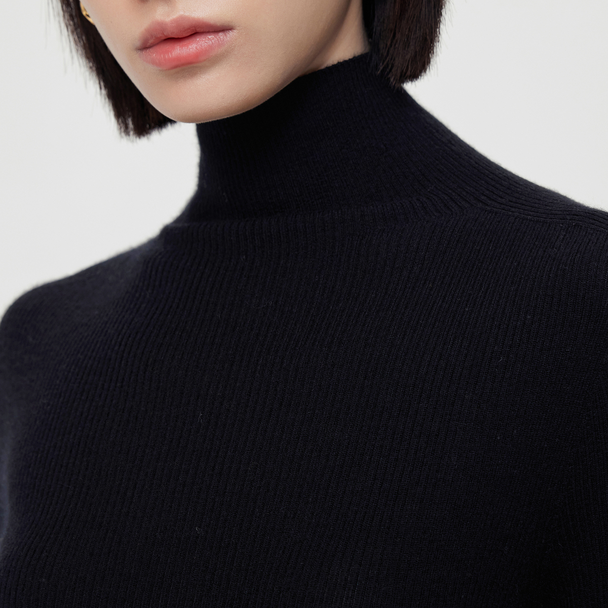 VGRASS时髦高立领山羊绒针织衫女23冬季新款黑色针织衫VZZ4O43010