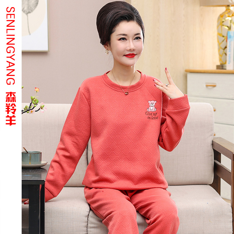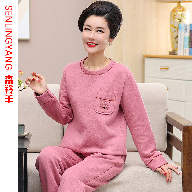秋冬季中老年妈妈睡衣三层保暖夹层薄夹棉加厚纯棉女士休闲家居服