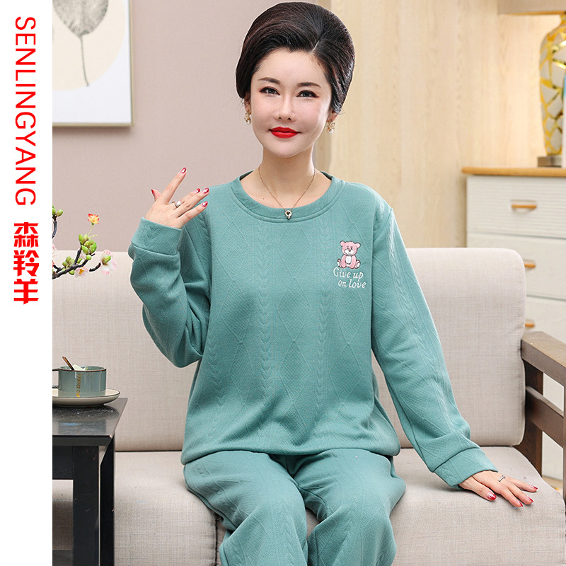 春秋冬季中年女士空气棉睡衣外穿