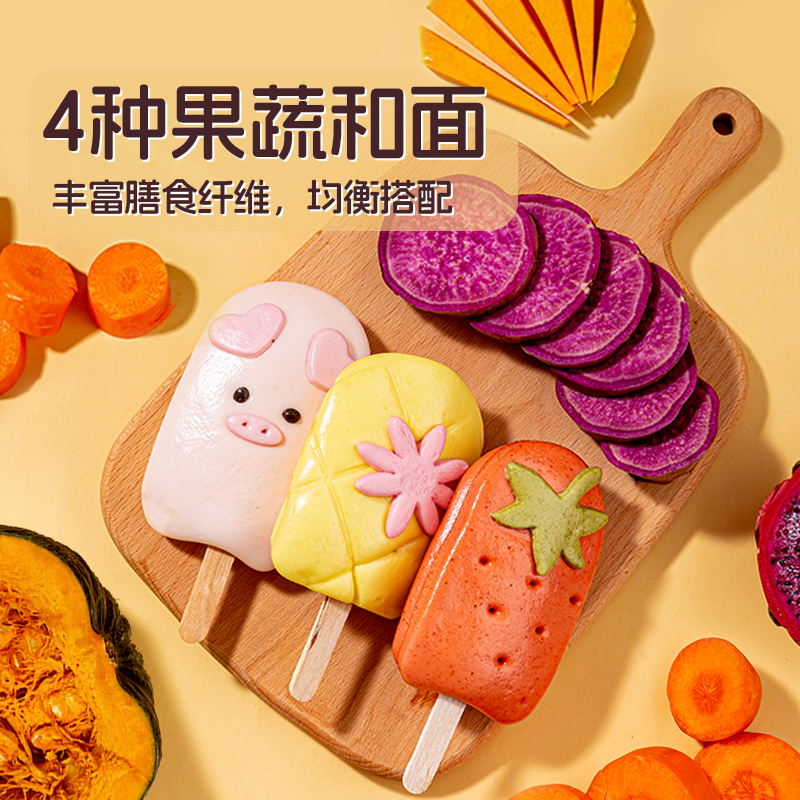 儿童果蔬牛乳馒头无添加营养速食早餐半成品宝宝卡通雪糕馒头