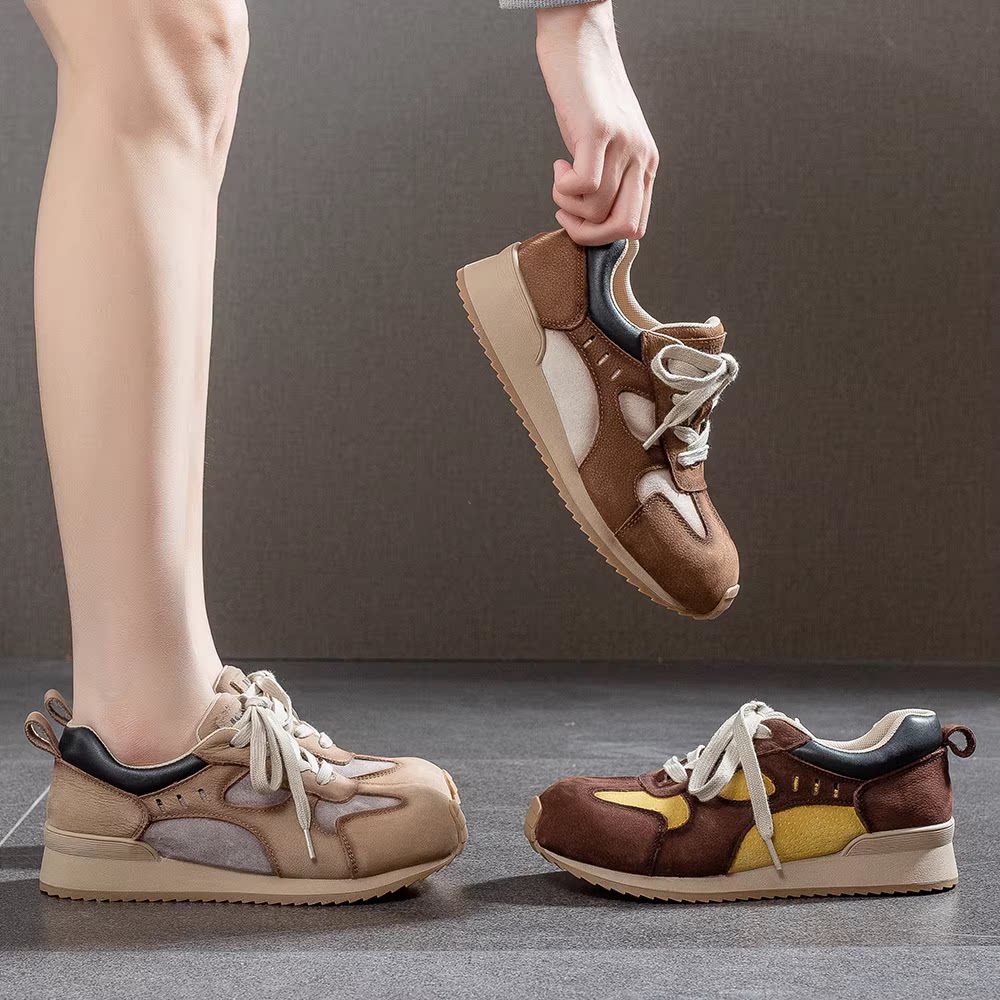 西瑞鸟春秋新款复古牛皮休闲女鞋