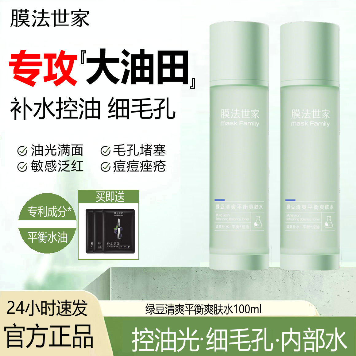 膜法世家绿豆爽肤水补水保湿控油男女士清爽官方正品旗舰店
