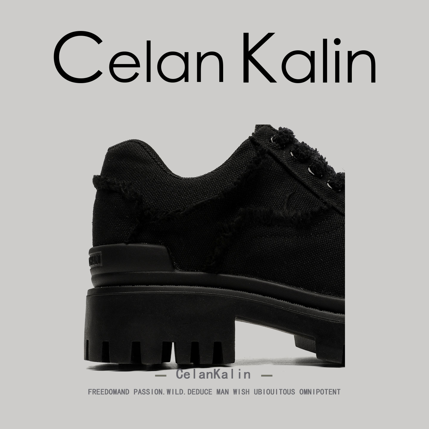 美国CelanKalin高端工装鞋男款秋季厚底增高黑色大头男士休闲皮鞋
