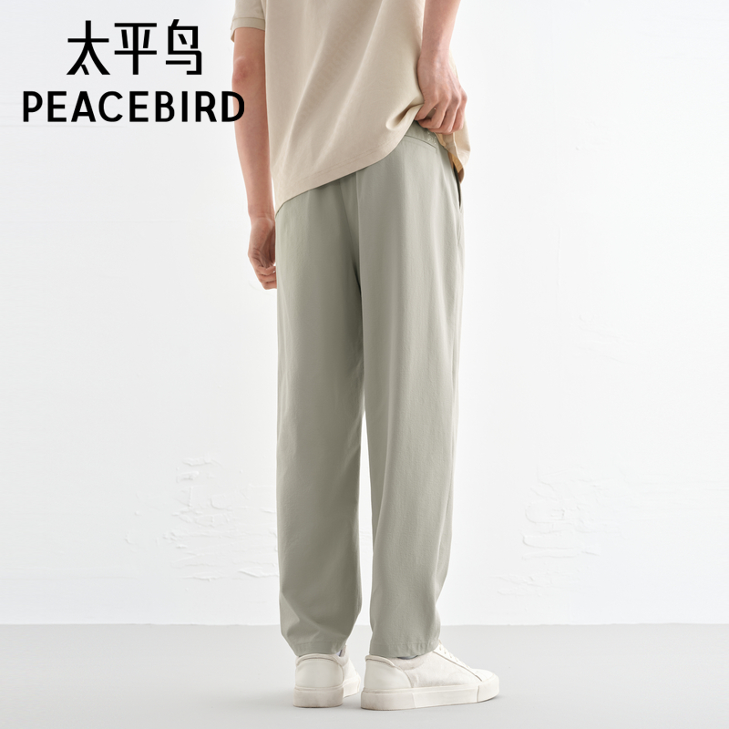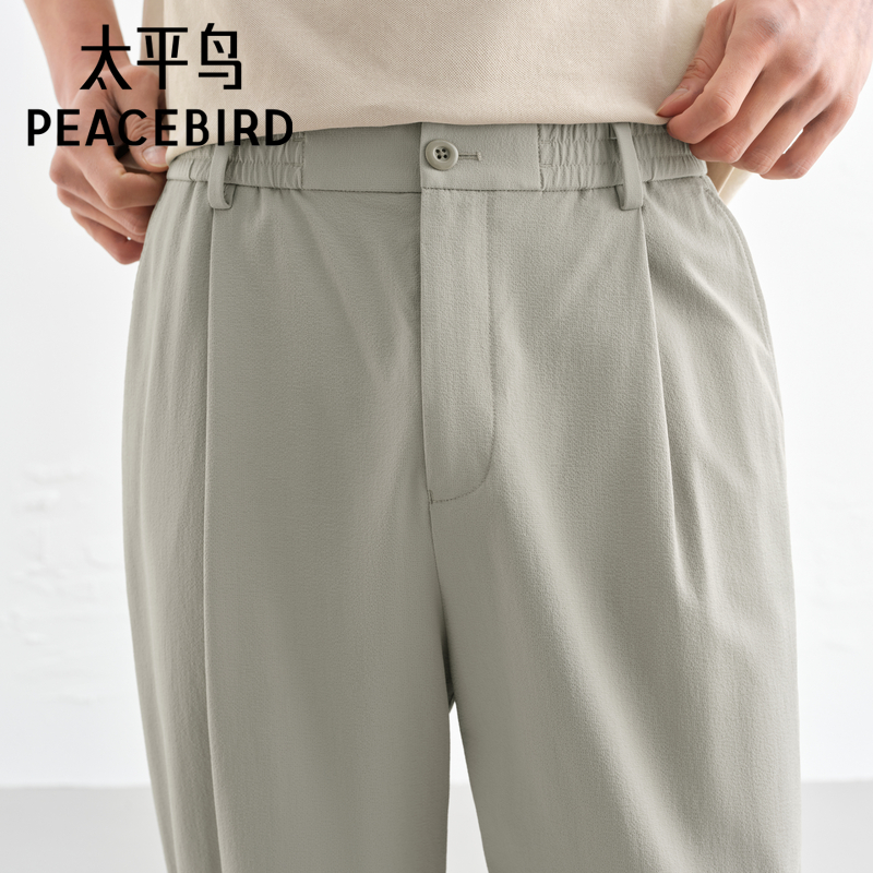 太平鸟男装夏季薄款泡泡纱休闲裤男浅色弹力休闲洋气百搭长裤潮