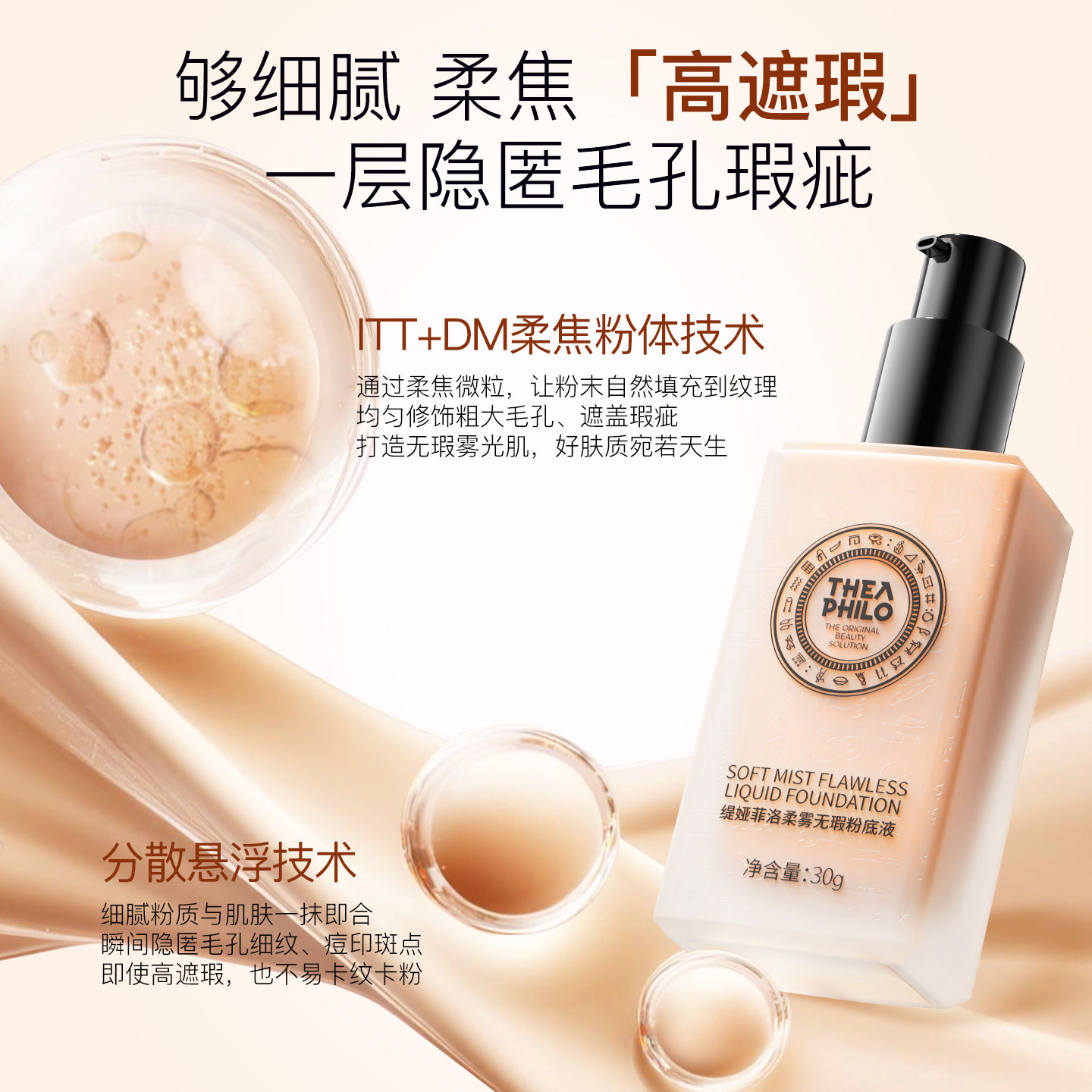 缇娅菲洛虫草粉底液遮瑕持久不脱妆干油皮妈生好皮官方旗舰店正品