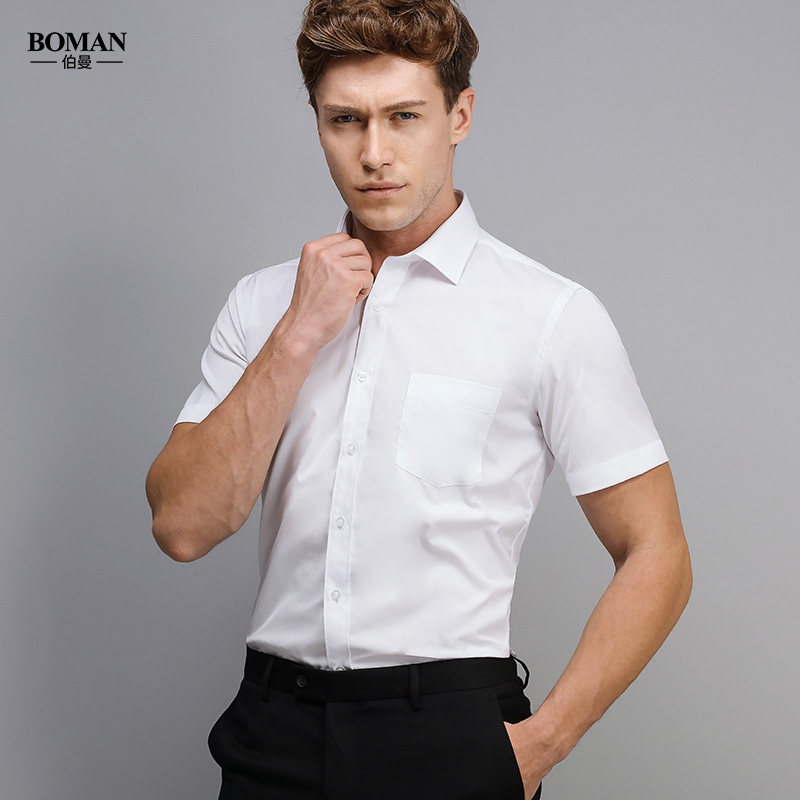 2019夏季短袖衬衫男青年商务休闲职业正装工装纯色白衬衣修身寸