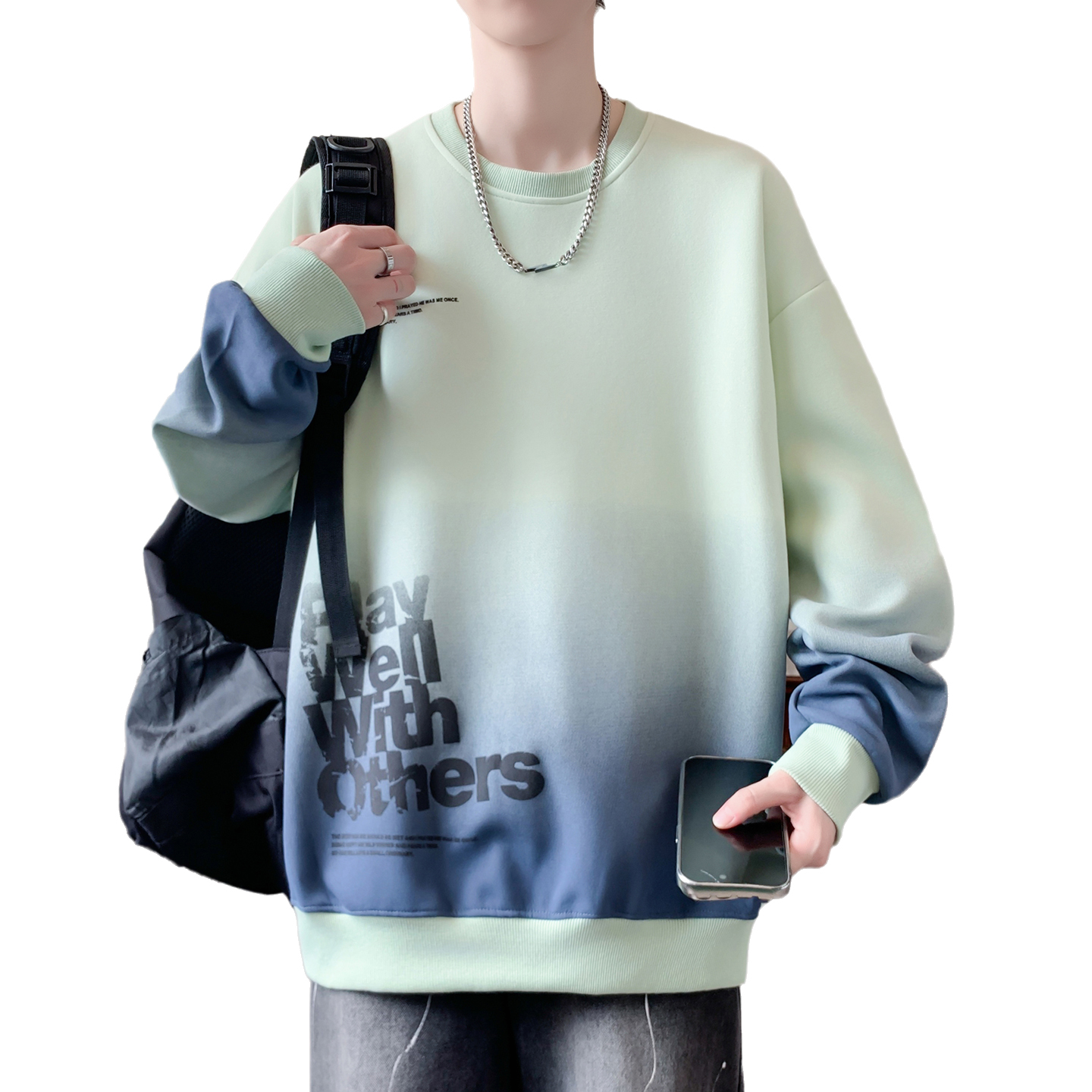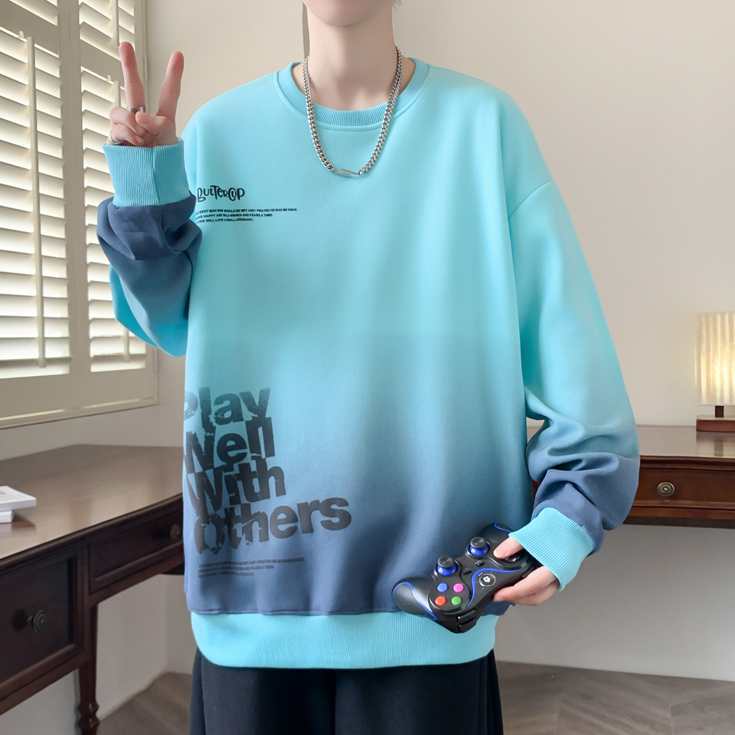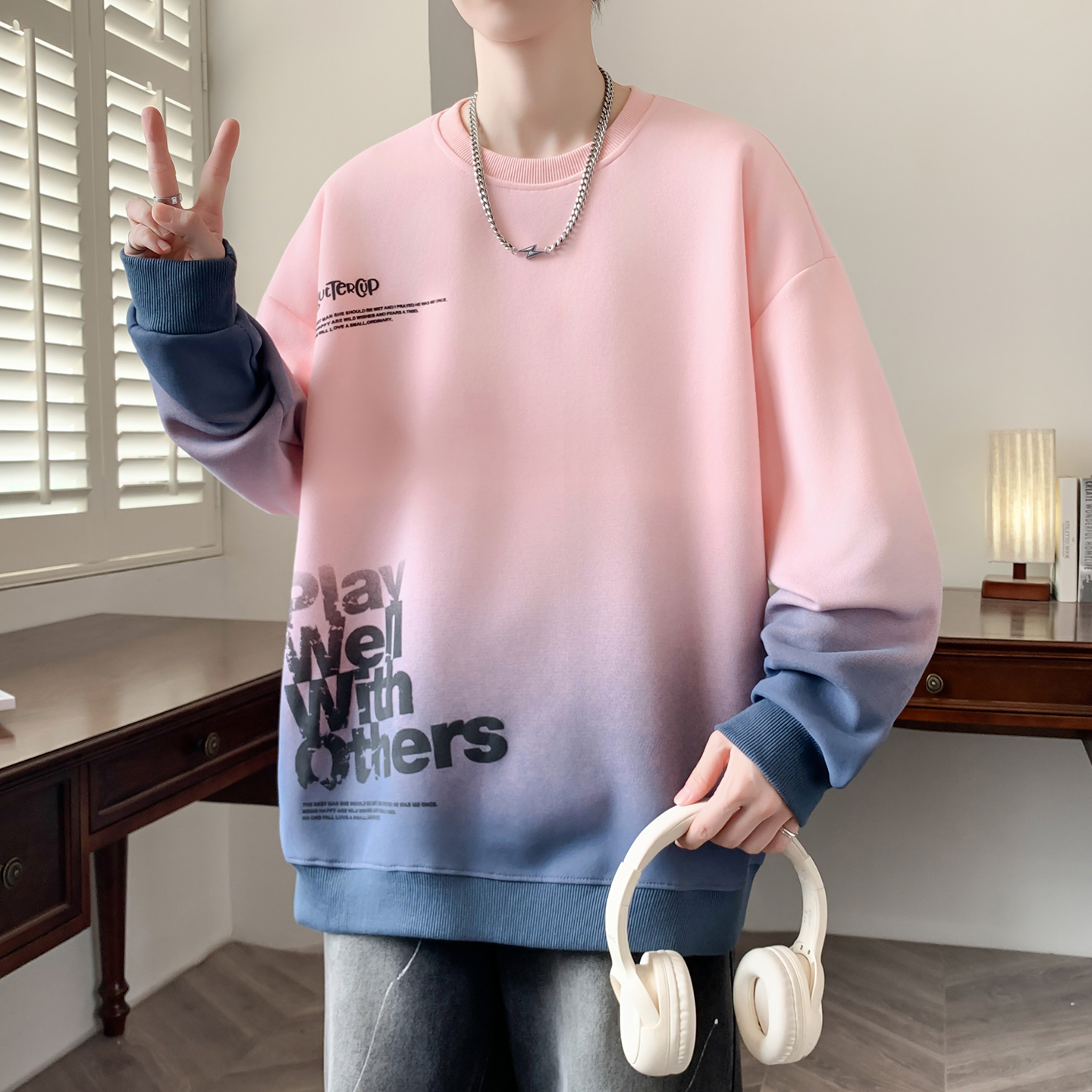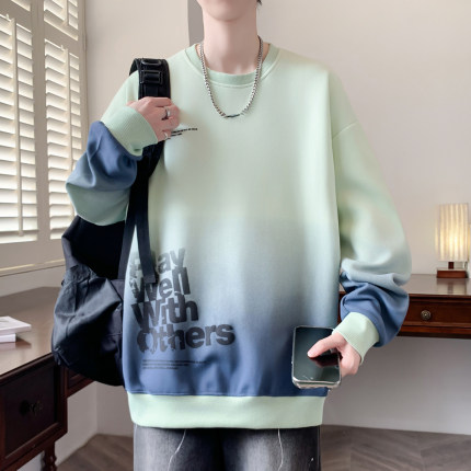 春秋季渐变圆领卫衣男高初中学生潮流长袖T恤帅气青少年大童上衣