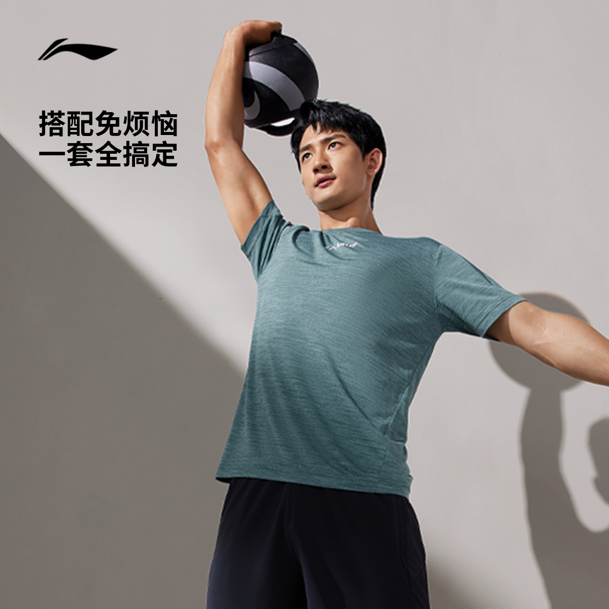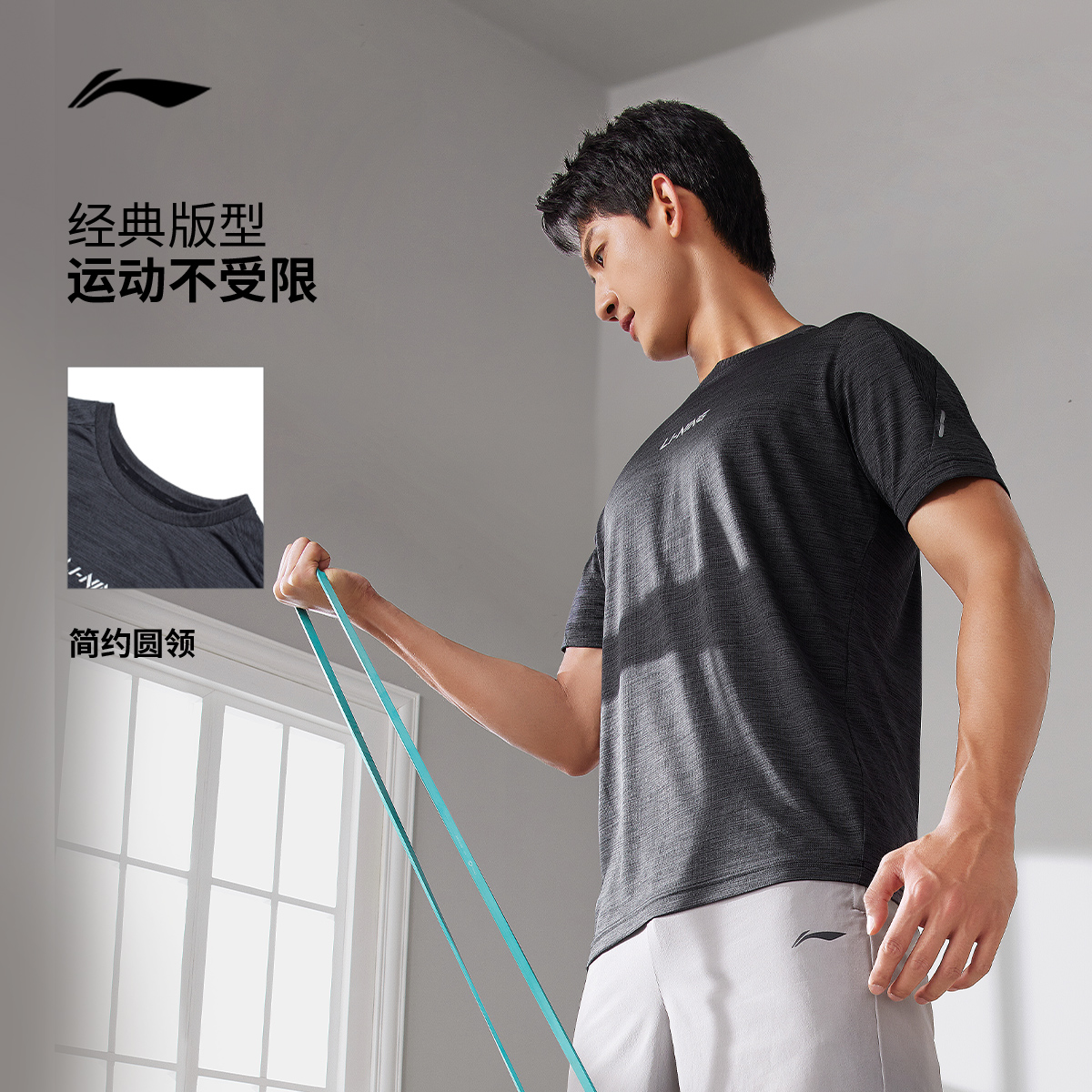 李宁速干衣男士夏季跑步上衣健身短袖跑步训练轻薄透气运动T恤男
