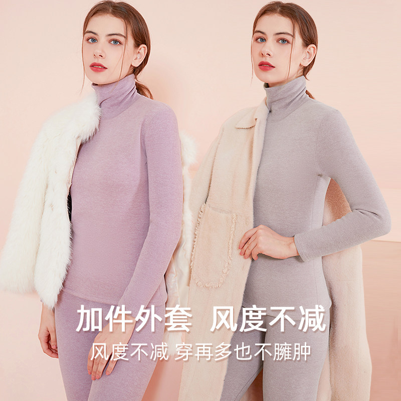 加绒加厚保暖内衣女士冬季一体绒上衣高领内搭发热打底衫秋衣秋裤