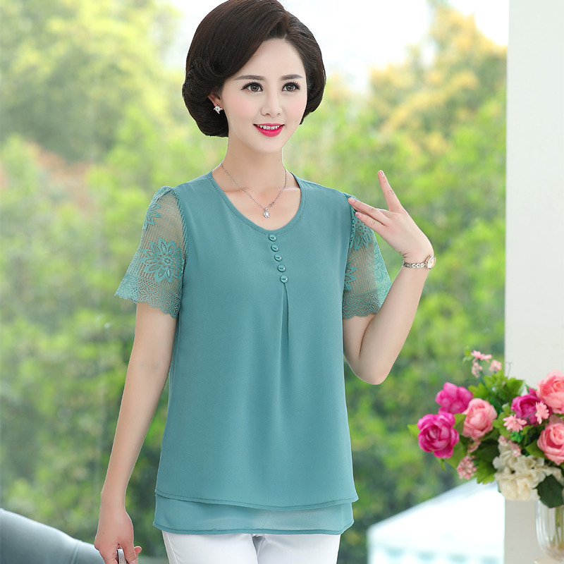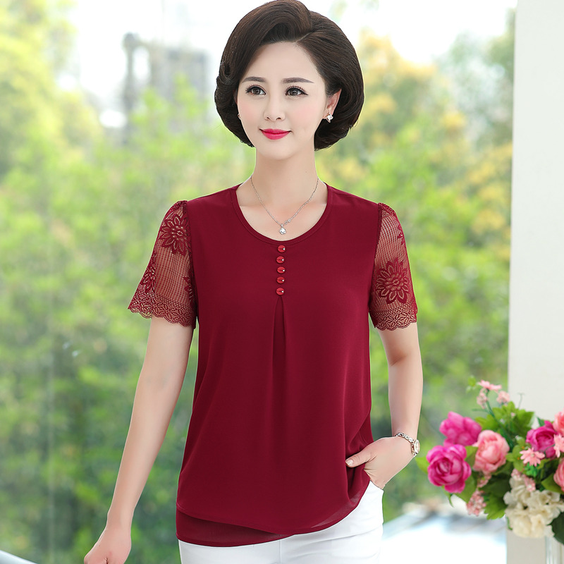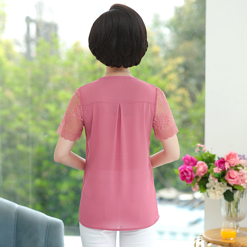 中老年女装T恤雪纺短袖中年妈妈装上衣大码夏装宽松时尚洋气妇女