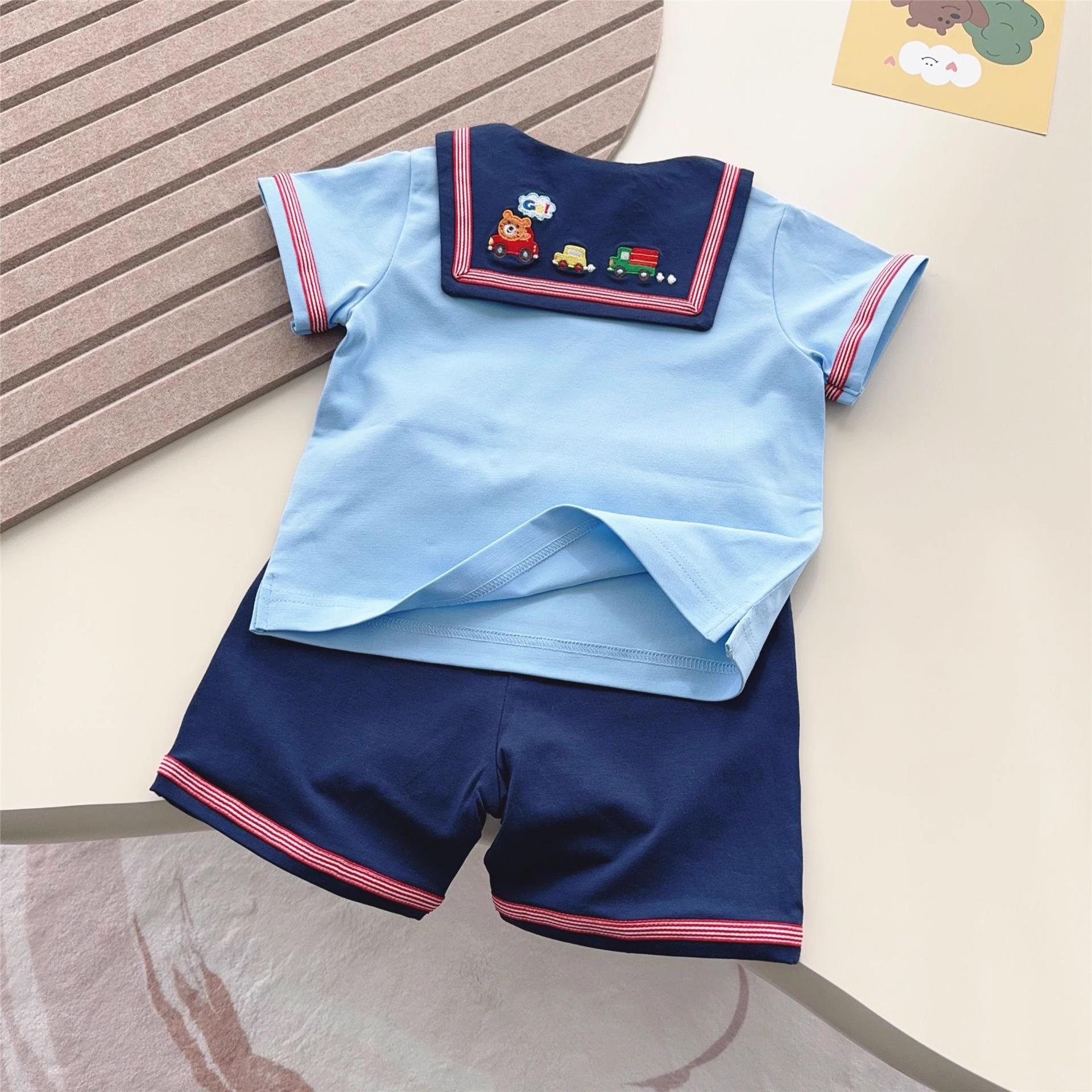 儿童海军风日单MIKI夏季新款男童水手套装女宝宝短袖短裤运动服潮