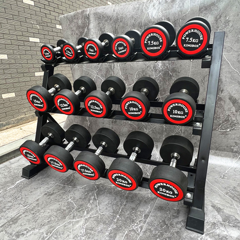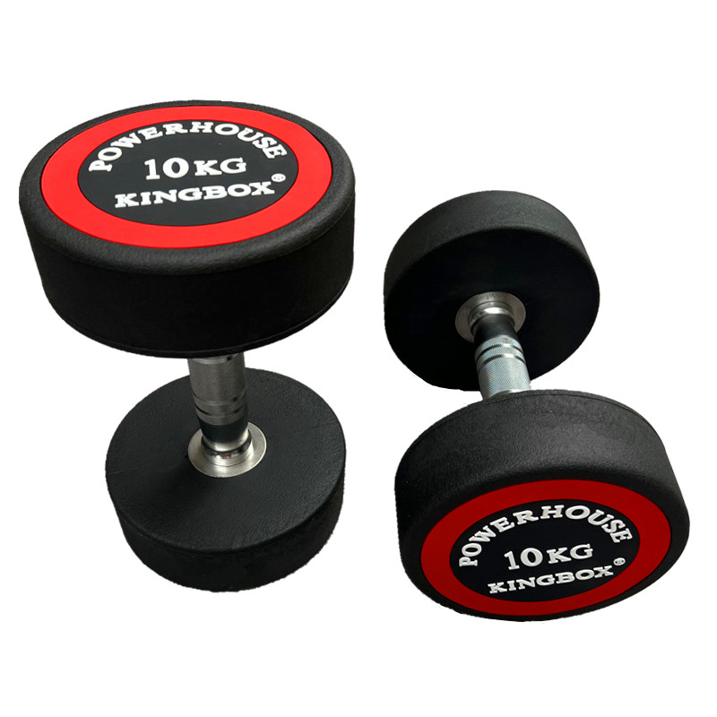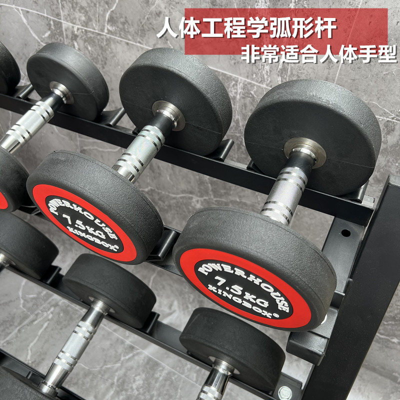 红标圆头固定哑铃橡胶包铁实心哑铃铸铁健身房工作室家用健身器材