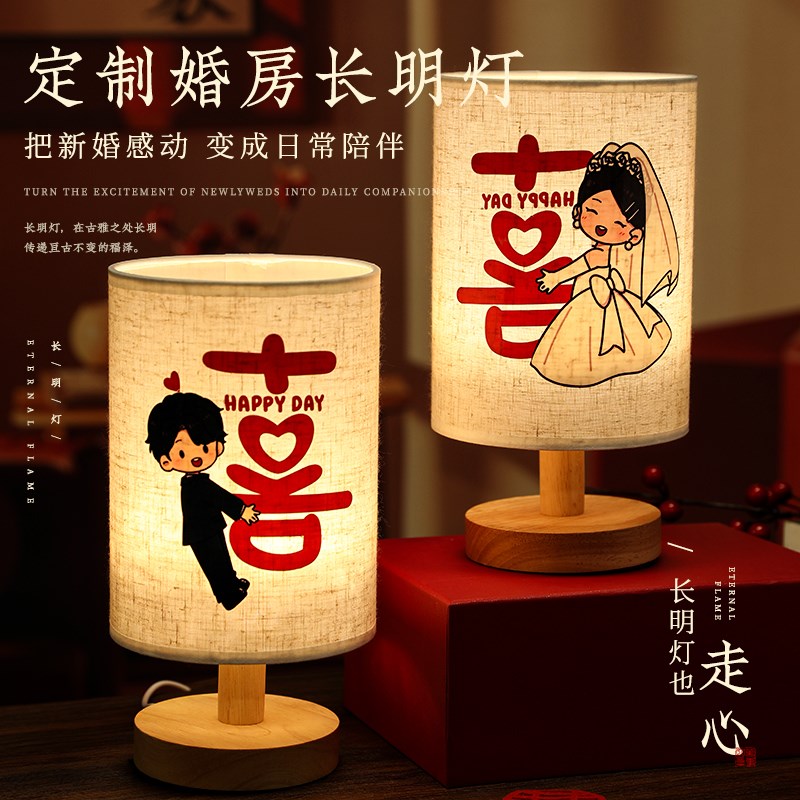 定制床头a长明台灯一对结婚房新婚礼物送新人实用新娘婚庆陪嫁喜