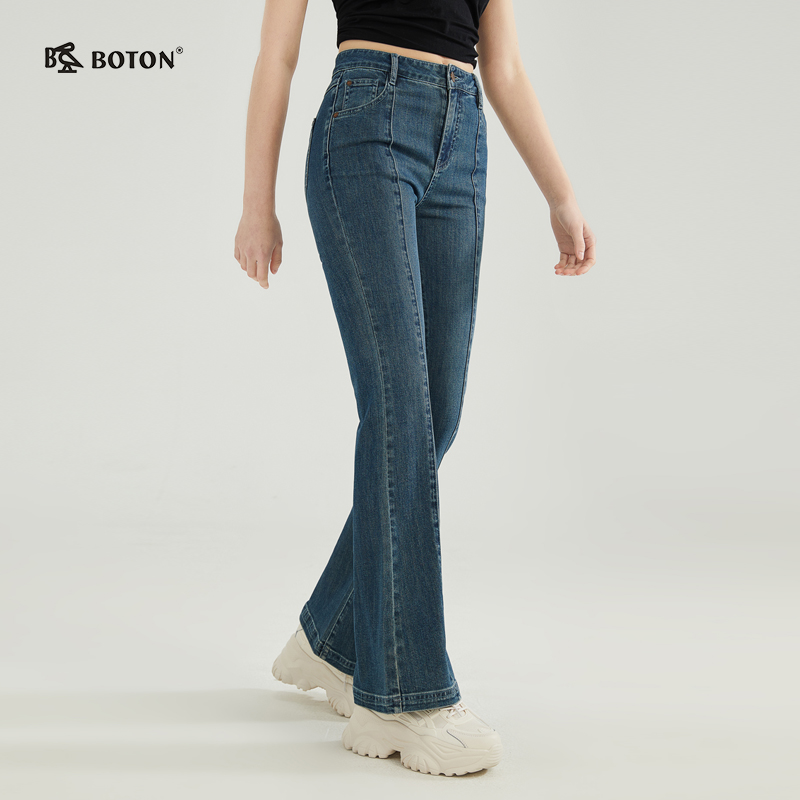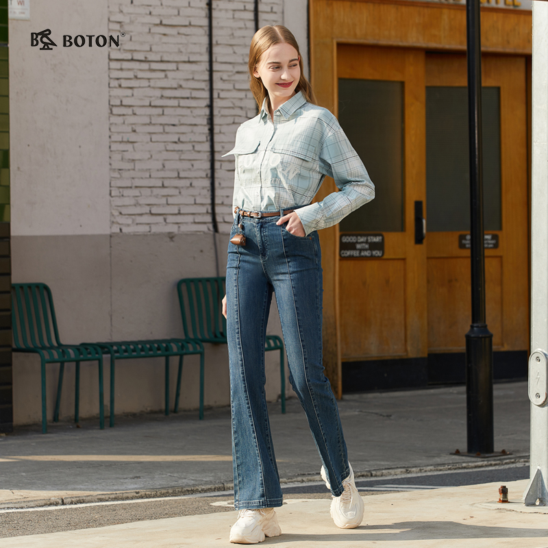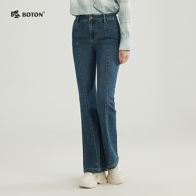 【复古挺括】波顿2025春夏新款女士紧身微喇牛仔长裤时尚修身百搭