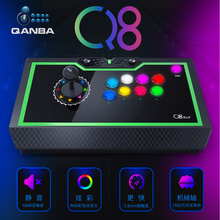 QANBA/拳霸Q8街机游戏静音摇杆机械轴快速RGB炫彩颜色自定义兼容电脑PS switch 手机PC steam