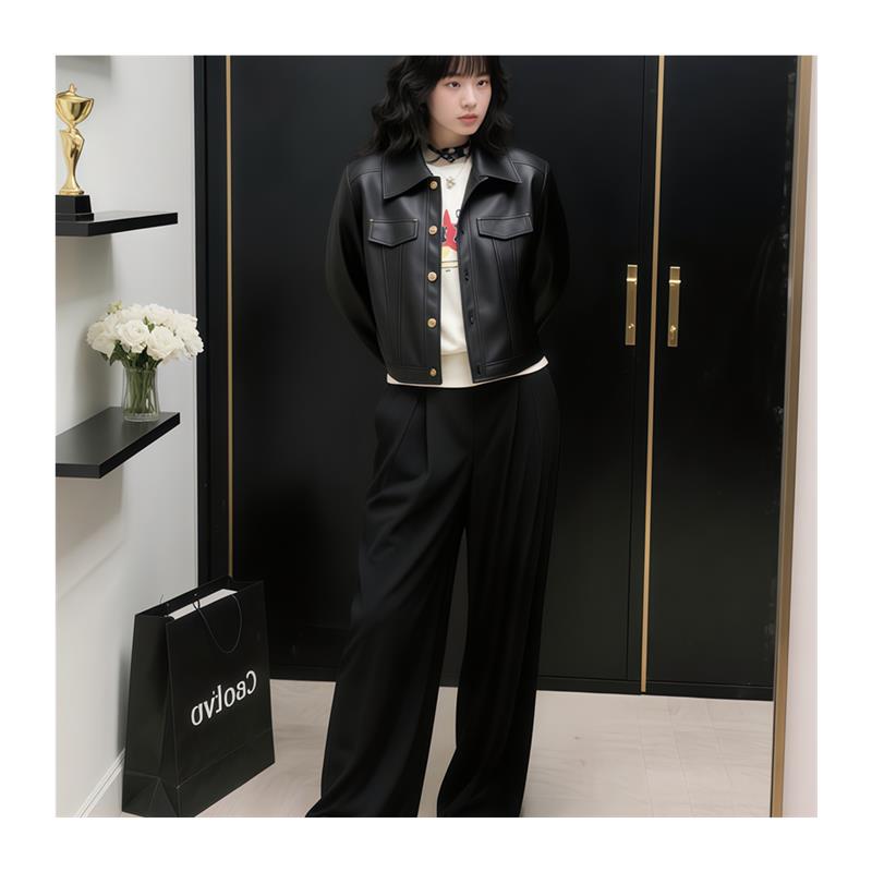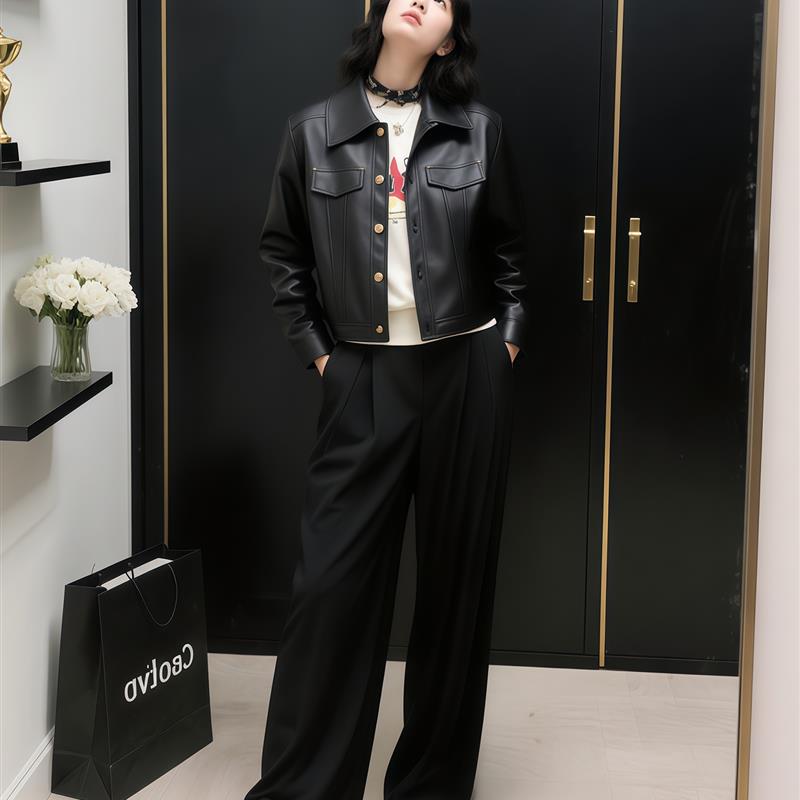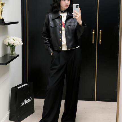 2025秋季覆古帅气机车皮衣外套女翻领单排扣修身显瘦短夹克上衣