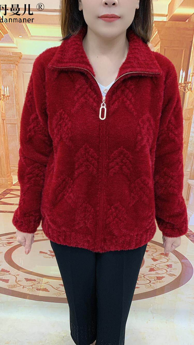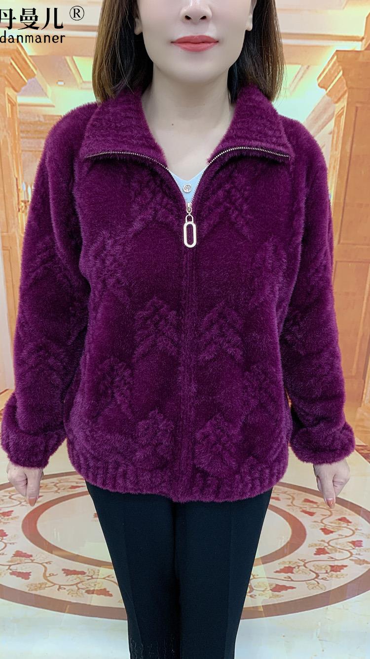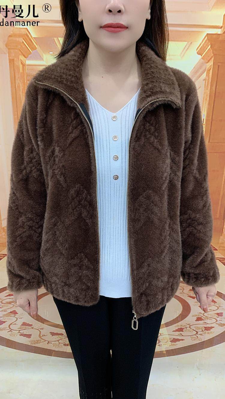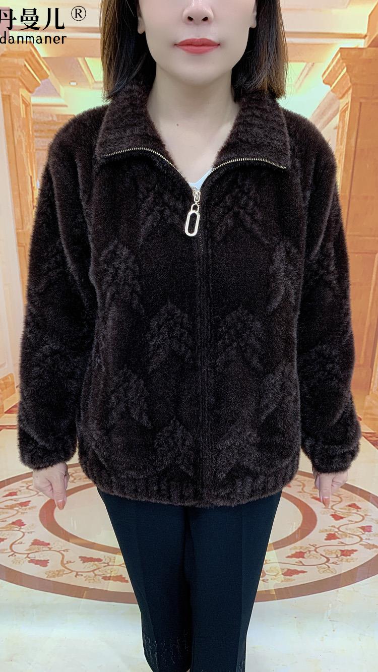 箭头立领金貂绒长袖开衫外套463款秋冬季加厚保暖宽松中老年女装