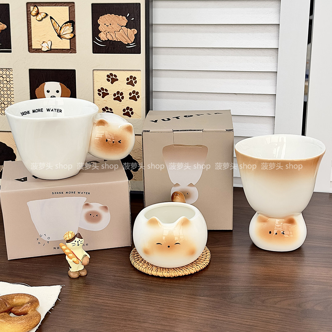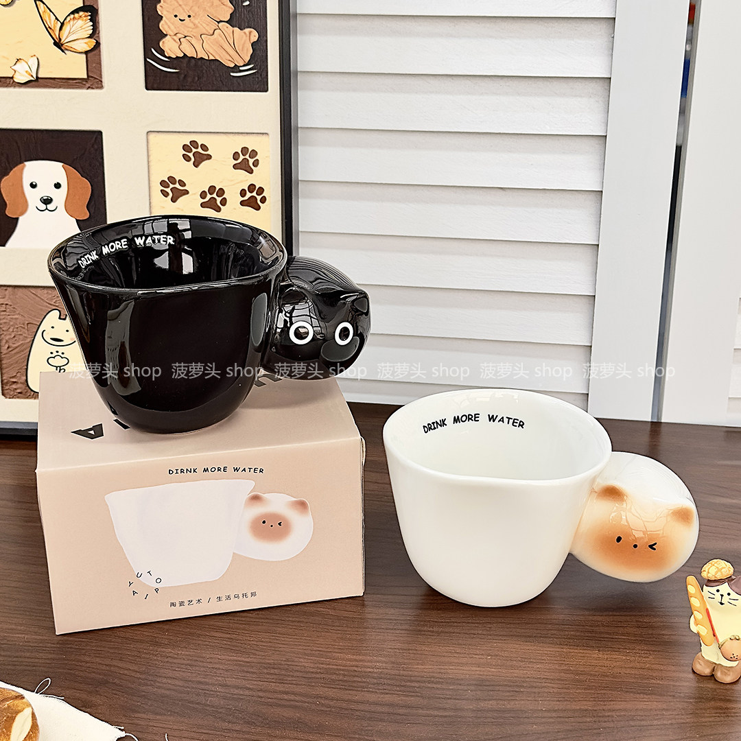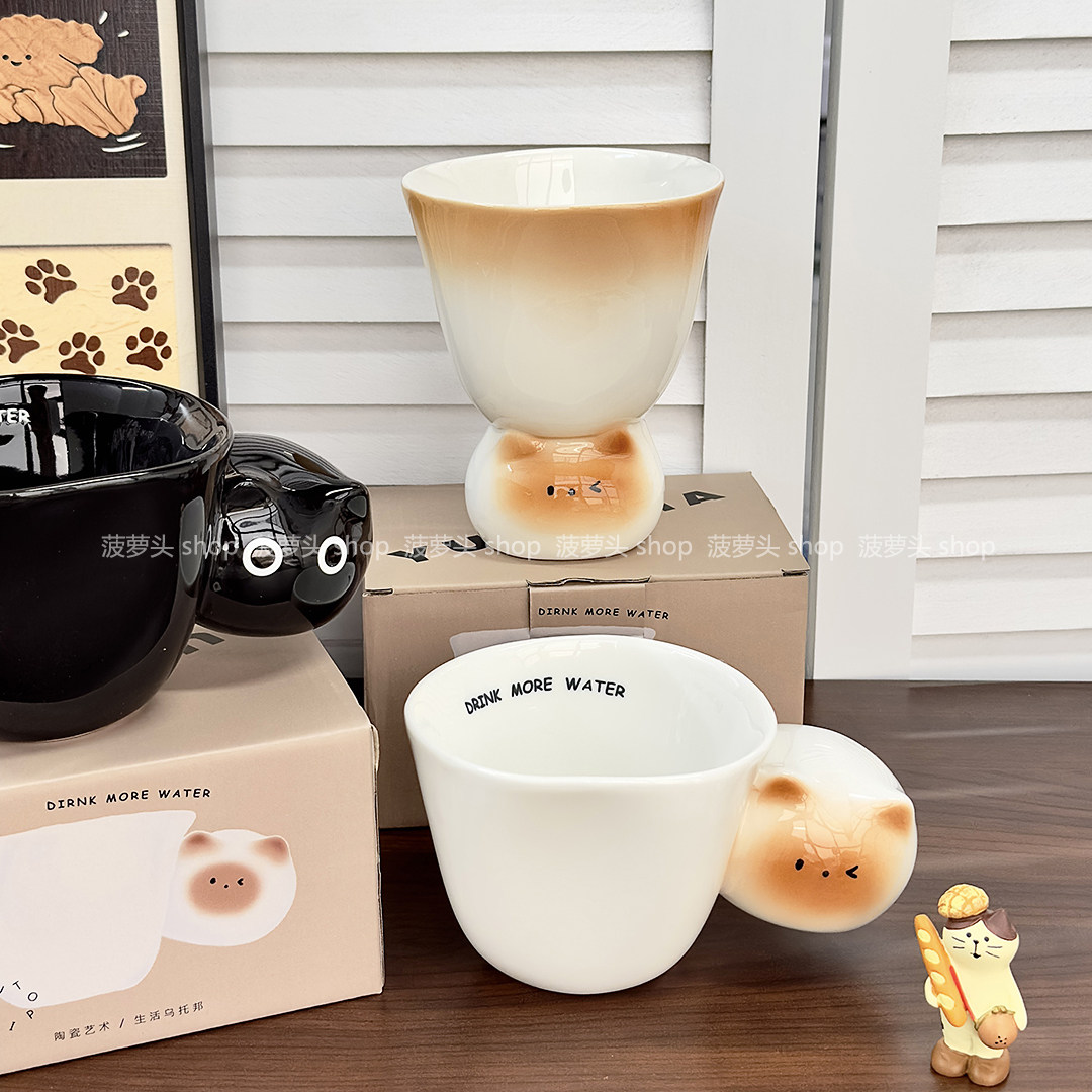 送女生生日礼物可爱手绘釉下彩暹罗猫马克杯家用水杯陶瓷咖啡杯女