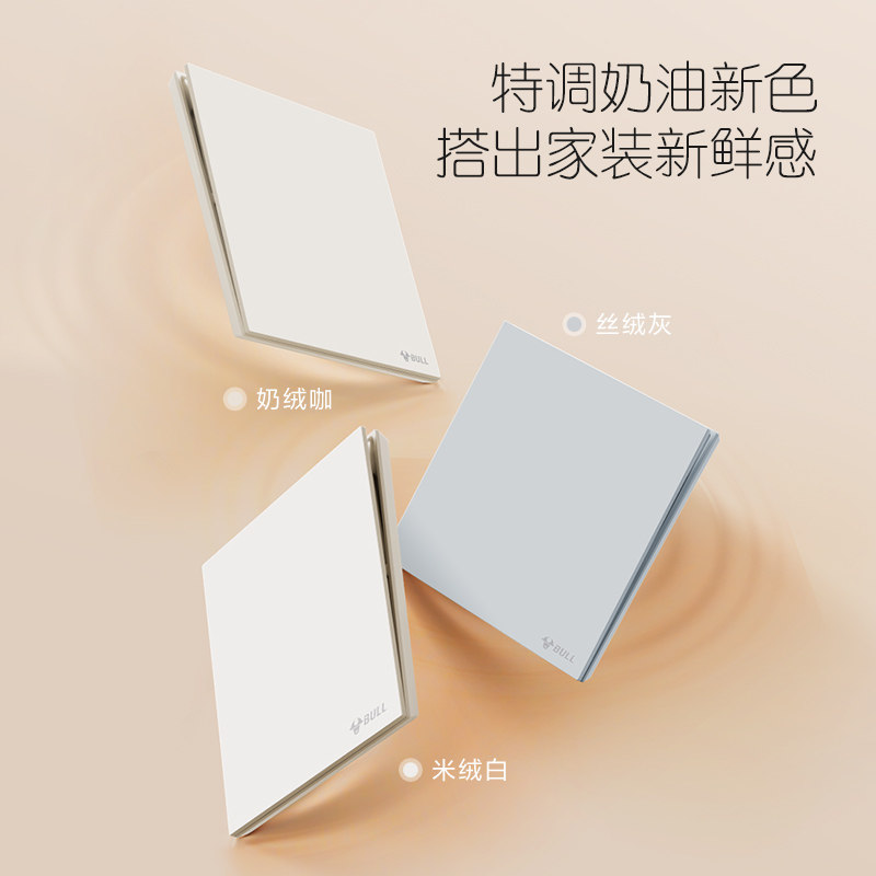 公牛蝶翼超薄G57肤感开关五孔插座16a面板哑光奶油风米绒白新品