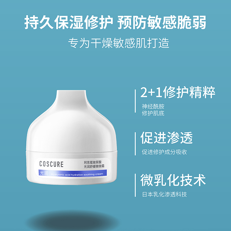 珂思蔻面霜敏感肌保湿霜干皮乳液补水玻尿酸微微霜男女正品