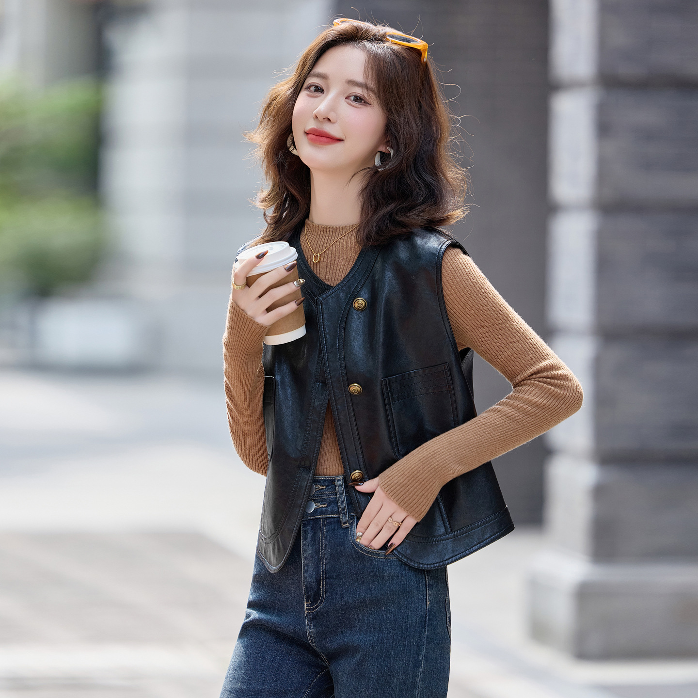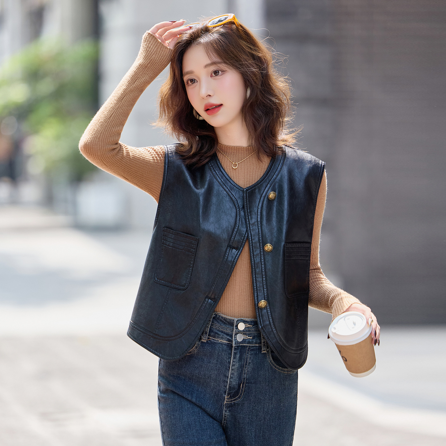 她之蝶女装新款紫澜门淑女坊官网正品机车服无袖外穿马夹外套