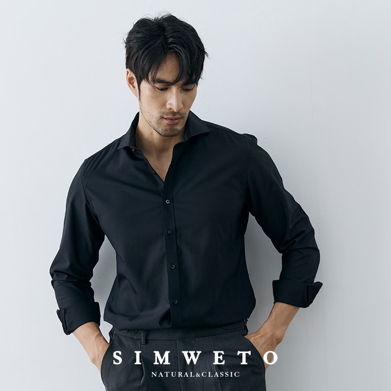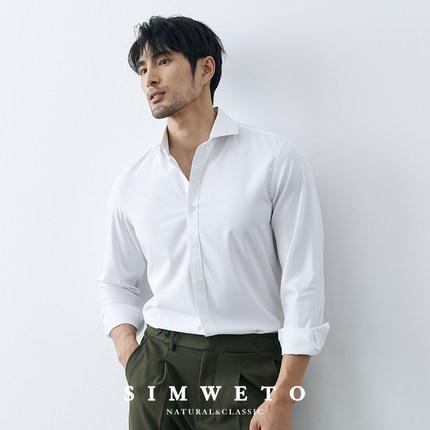 高档定制男士商务休闲温莎领蓝色衬衫潮流免烫高级感宽松白色衬衣