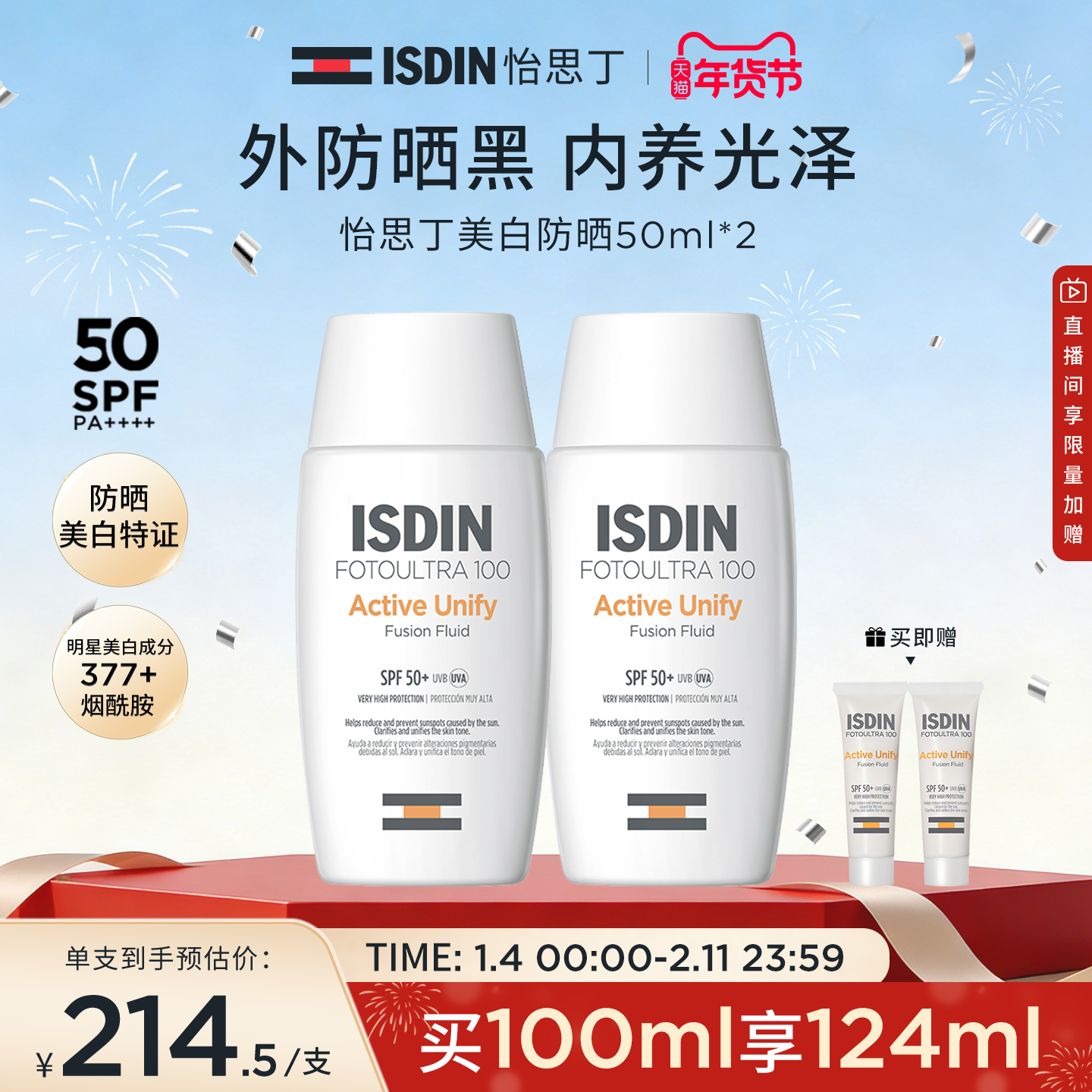 【美白防晒】怡思丁秋冬水感防晒乳面部美白淡斑提亮防晒霜SPF50+