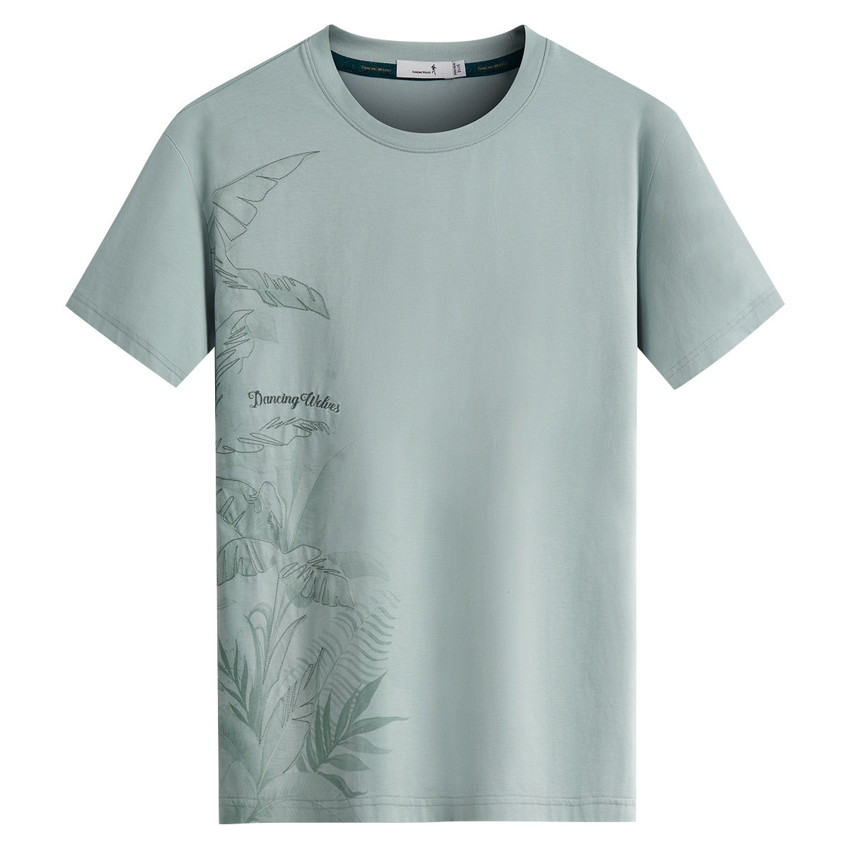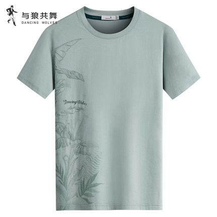 与狼共舞短袖植物印绣抗菌T恤男