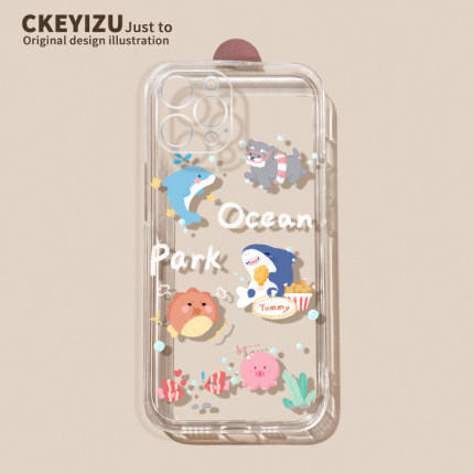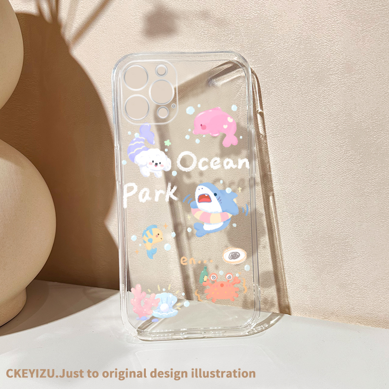 适用于苹果15手机壳可爱鲨鱼15pro防摔14plus直边iPhone13promax卡通12mini硅胶11薄6sp全包xr软se3透明7/8p