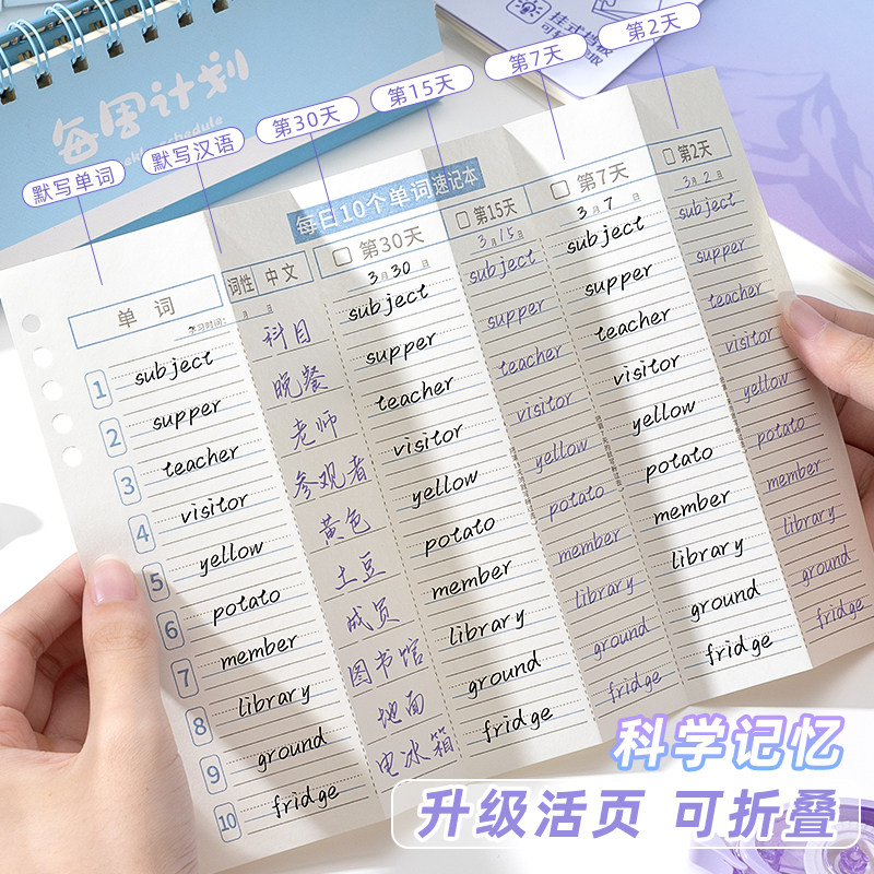 艾宾浩斯记忆曲线英语单词本小学生初中生默写单词记背神器高颜值单词记忆学习考试文具每日10词单词记忆曲线