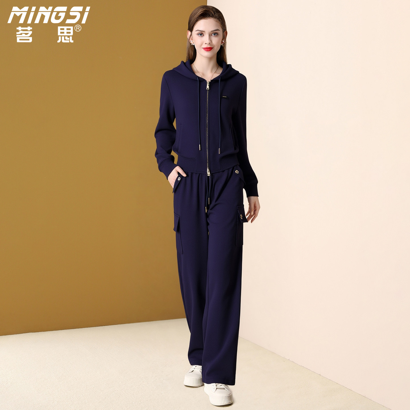 茗思休闲运动套装女2026春季新款连帽拉链外套阔腿长裤减龄两件套